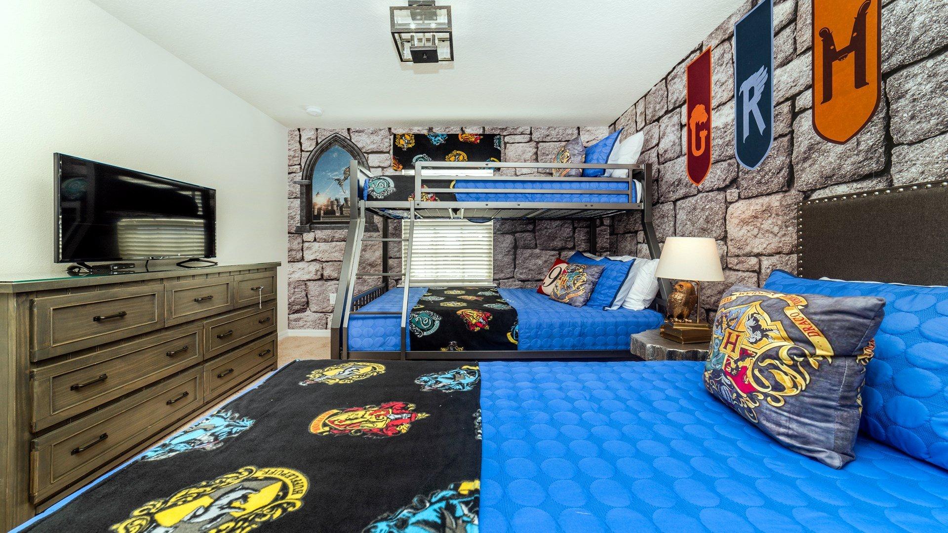 - Bedroom 4: Harry Potter theme with 1 twin and 1 twin 1 full bunk (Upstairs)