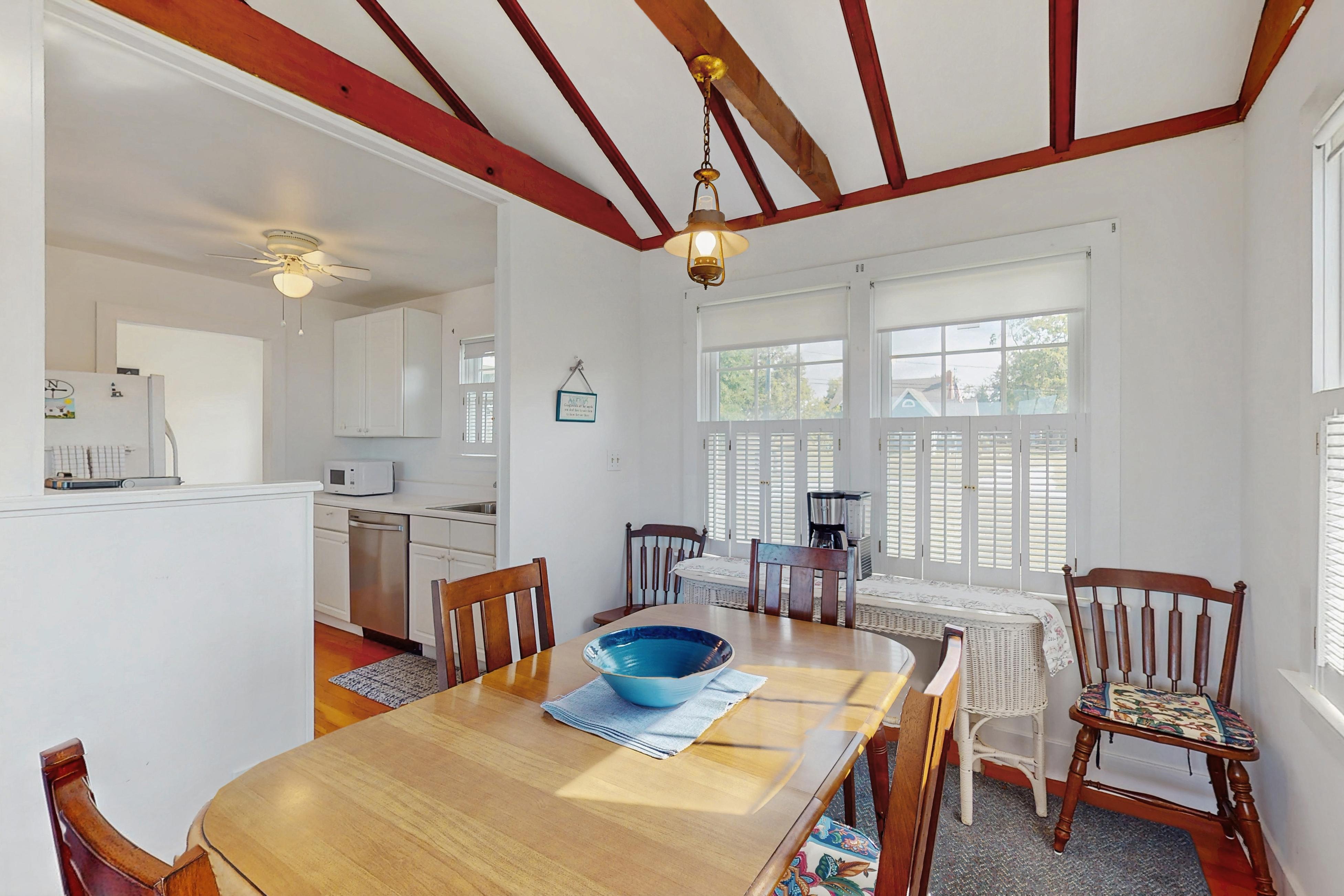 Back inside, you'll come across a convenient bedroom/studio with a sofa/sofabed, a bookshelf, and another desk with a desk chair. This is a more secluded spot where you can make those important calls or focus on your work. The kitchen offers all the appliances, cookware, and utensils you could need to prepare everything that comes to mind, even that new recipe you've been dying to try. There's a coffee maker that will keep you up no matter all the activities you want to try, a blender that's perfect for fruit smoothies, and a dishwasher that's ready to do the dishes for you. Right off the kitchen is the dining table that seats four and offers delightful yard views.