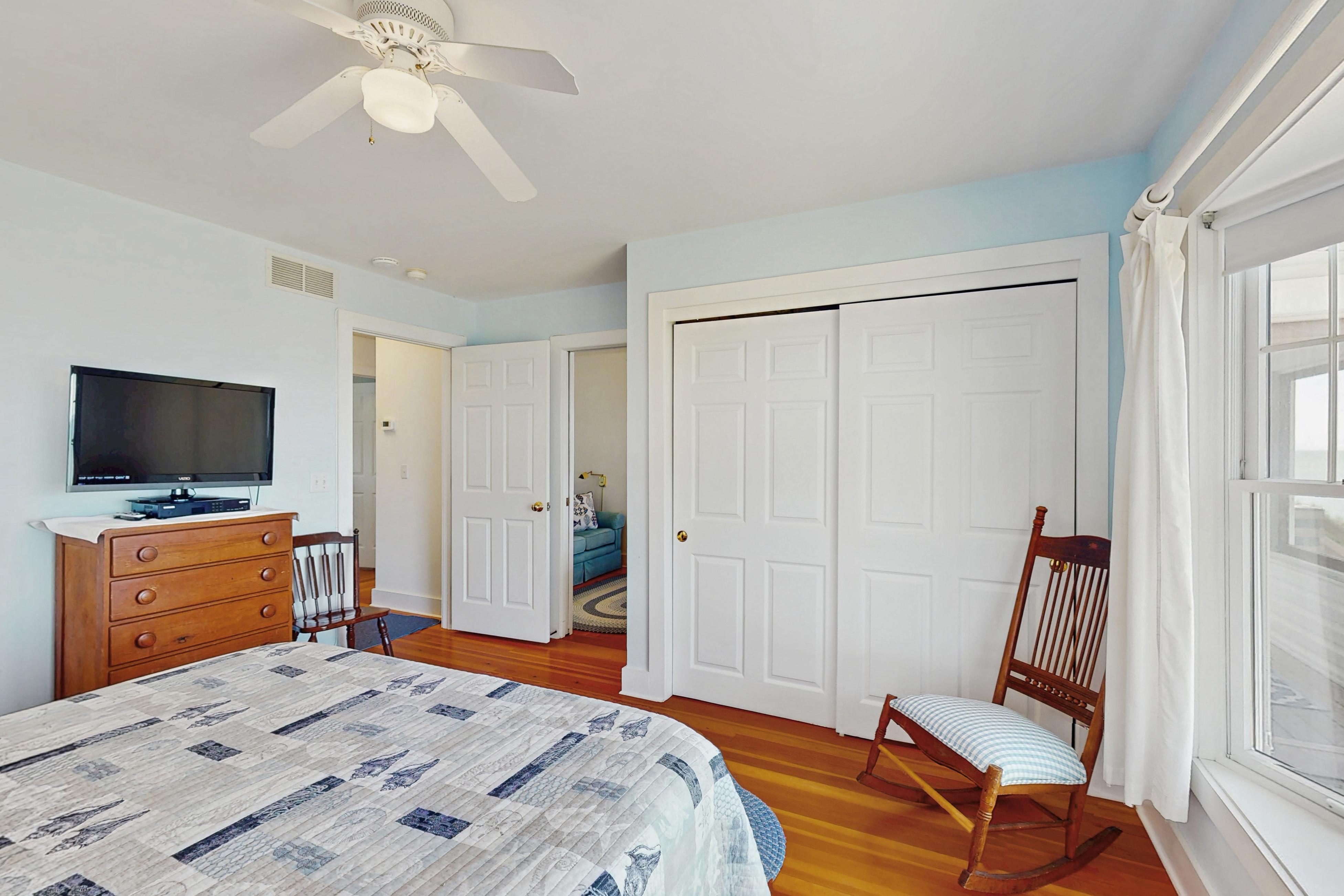 There is a backyard that offers a nice outdoor space with another deck, only this time it comes equipped with a convenient picnic table and an outdoor shower! You can easily rinse off the sand after your daily walk on the beach. The main bedroom has a flatscreen TV with streaming services and an ensuite full bathroom with dual sinks. The guest bedroom also has an ensuite bathroom.