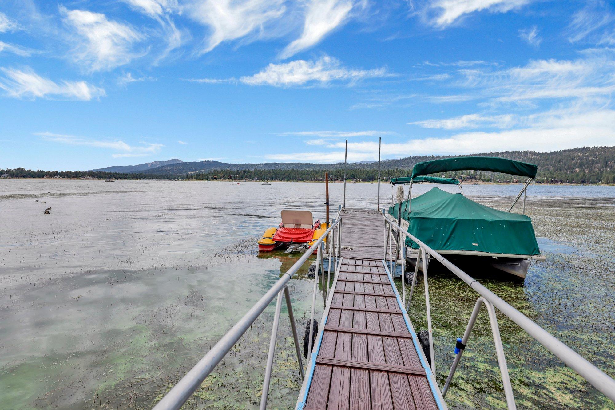 All four bedrooms are made up for your vacation with warm linens, blankets, pillows, and fresh shower towels. Two bedrooms and one bathroom are located on each level. There is a second kitchenette located upstairs in the open living area, which also boasts another streaming TV, a second fireplace, and incredible lake views out of the big sliding glass doors which lead to the second upper deck. Backed up to the National Forest you will get to experience alpine nature right outside your backdoor, with multiple decks and patios available you will find a Propane BBQ and patio furnishings with the most incredible sunset and lake views! Your group will love your stay here at Happy Harbor, located just 10 minutes by car to the resorts, Village, or shopping areas, you will have the best of Big Bear at your fingertips! Book today!