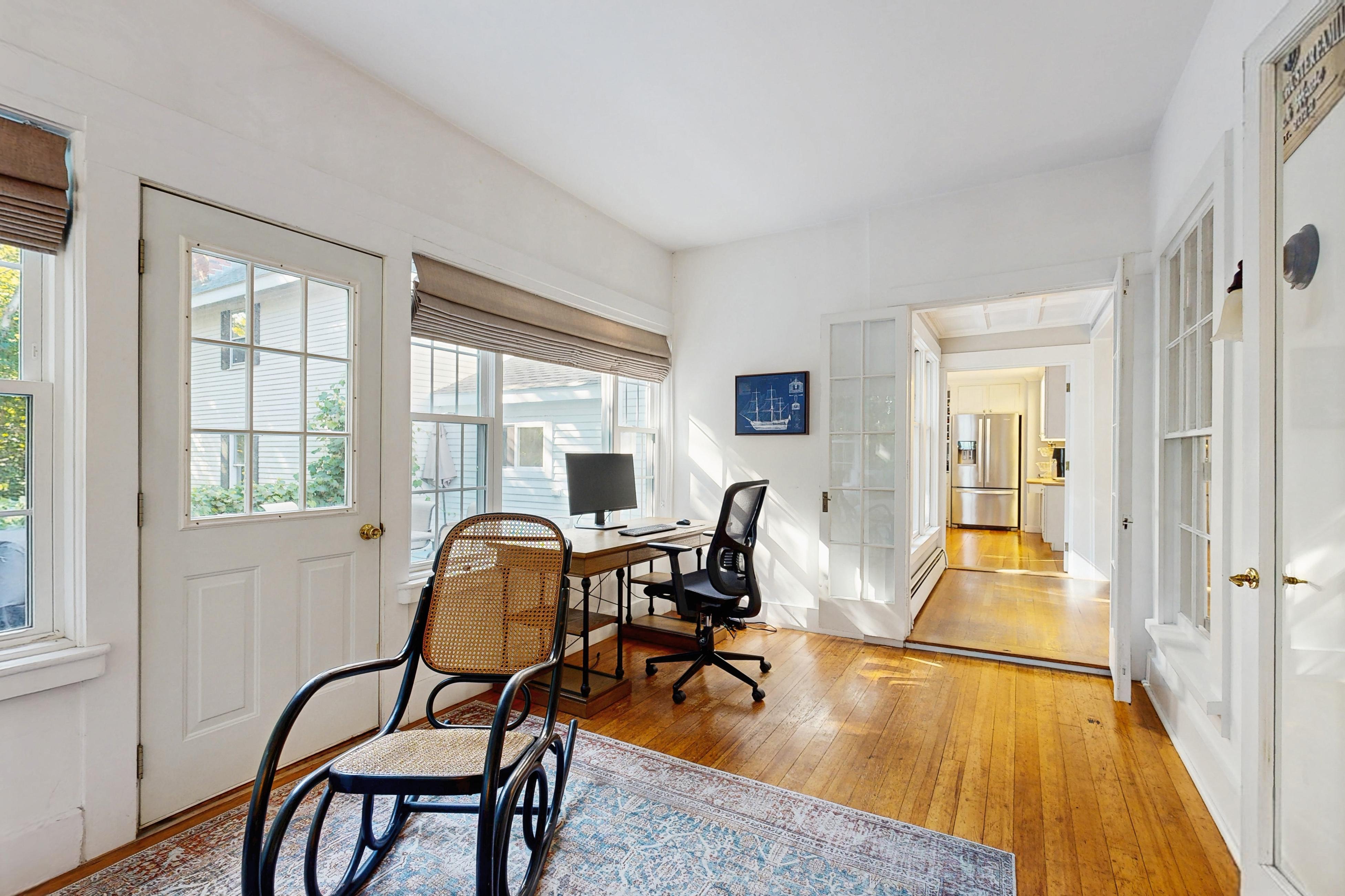When you're looking to unwind, take your pick of three enclosed porches - one where you can sip your morning coffee with a view of the street, a second that serves as both the home office and a sitting area, and a third upstairs that acts as an additional sleeping space overlooking the yard. Between these and the living room, the large dining room, the kitchen, and the outdoor deck (with a gas grill) draped in vines, you'll have ample space to gather with loved ones.