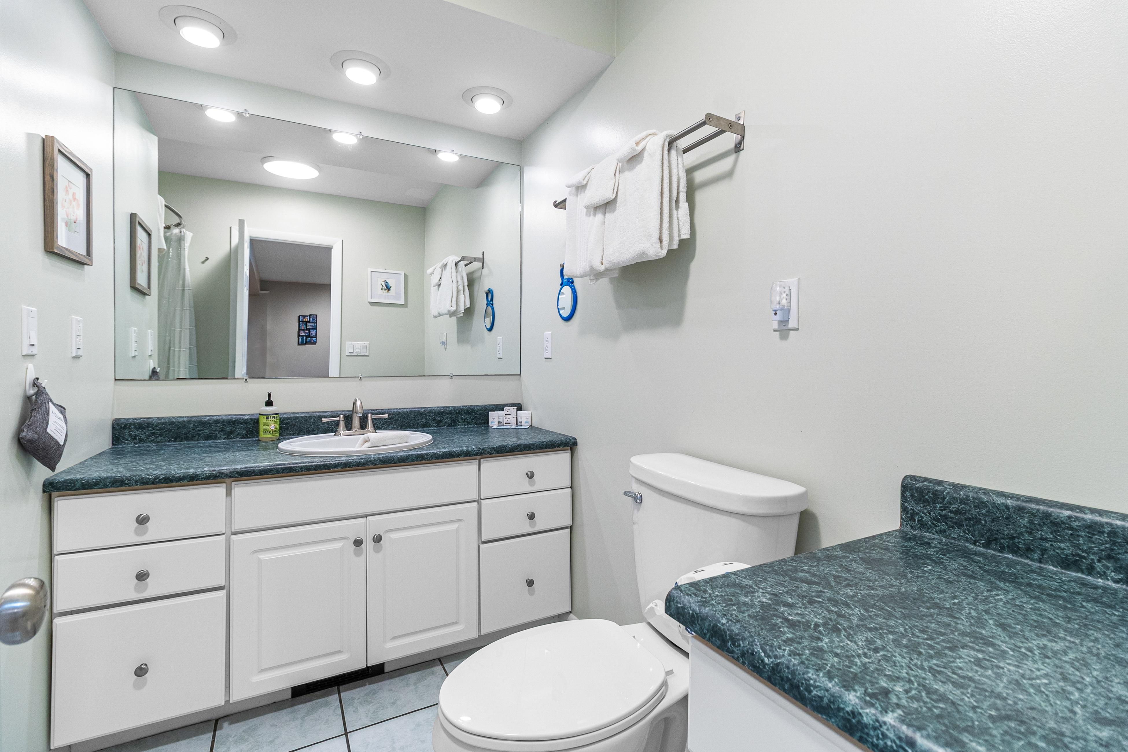 The updated island kitchen features all-new, Monogram brand stainless steel appliances, including a gas range, plus a dishwasher for easy home meal prep and stress-free cleanup. There's eat-in seating for four at the breakfast bar or you and your guests can enjoy al fresco dining out on the porch at the covered patio table set for four.