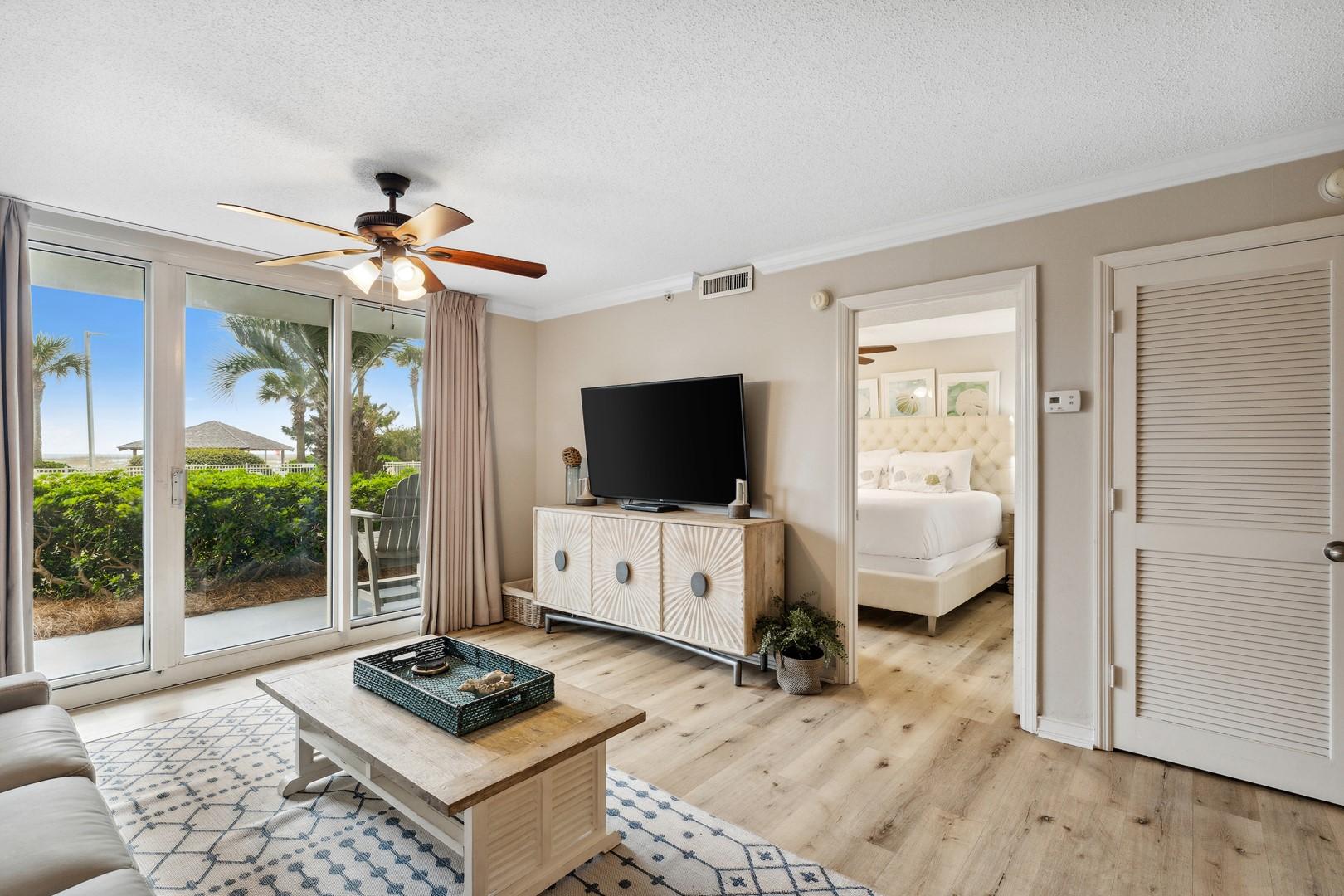 Pelican Beach Resort rental 114 located in Destin, FL by Panhandle Getaways is a 2 bedroom, 2 bathroom beachfront vacation home complete with all of the conveniences of home. Free round of golf each day of your stay included.