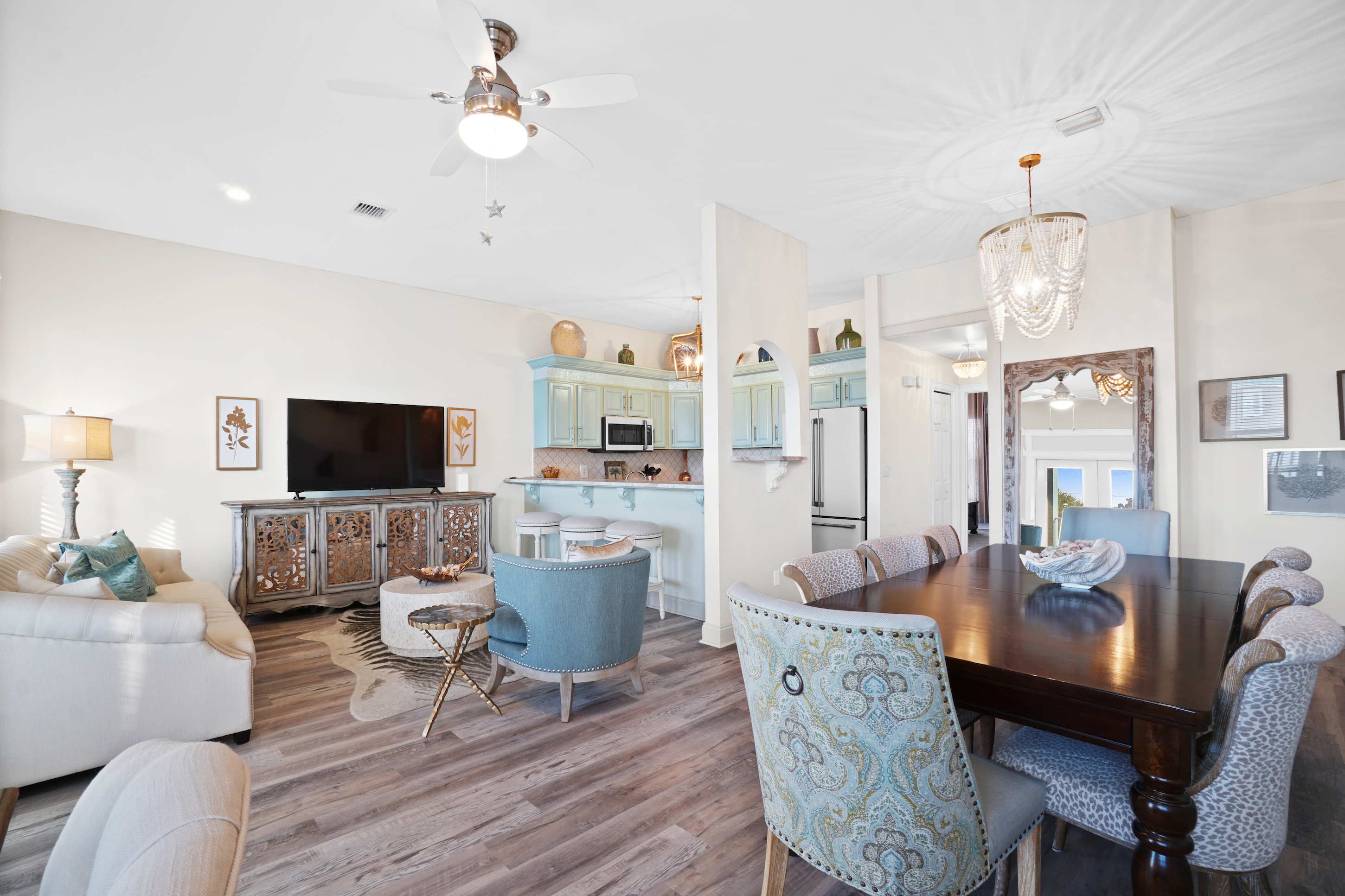 Dreams Come True by Panhandle Getaways is a spacious, pet-friendly vacation home located across the street from the beach on the west end of Panama City Beach. With two kitchens, multiple living areas, a third-floor game room, and lakefront views, this 4-bedroom retreat is perfect for families and groups looking for comfort, fun, and coastal charm.