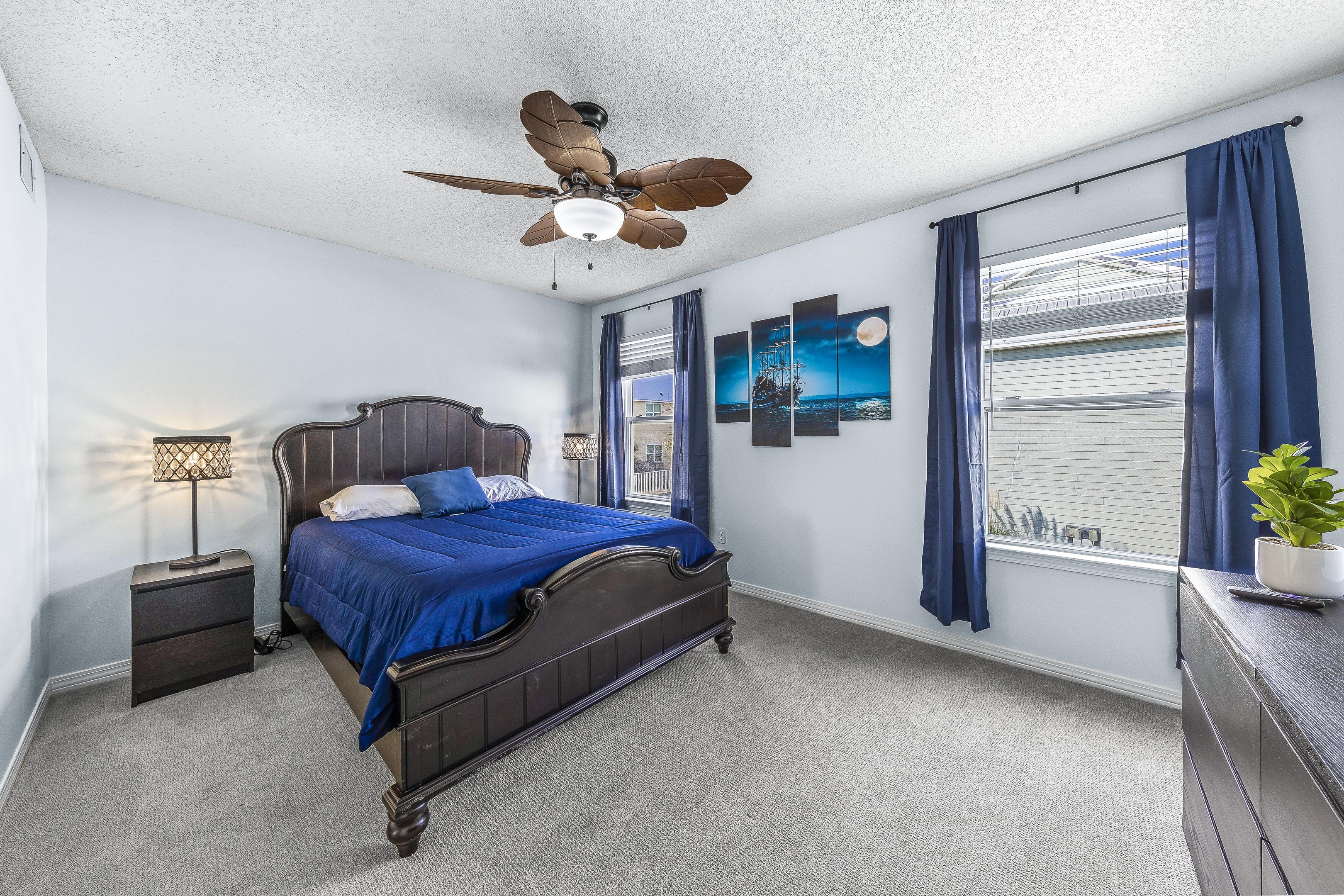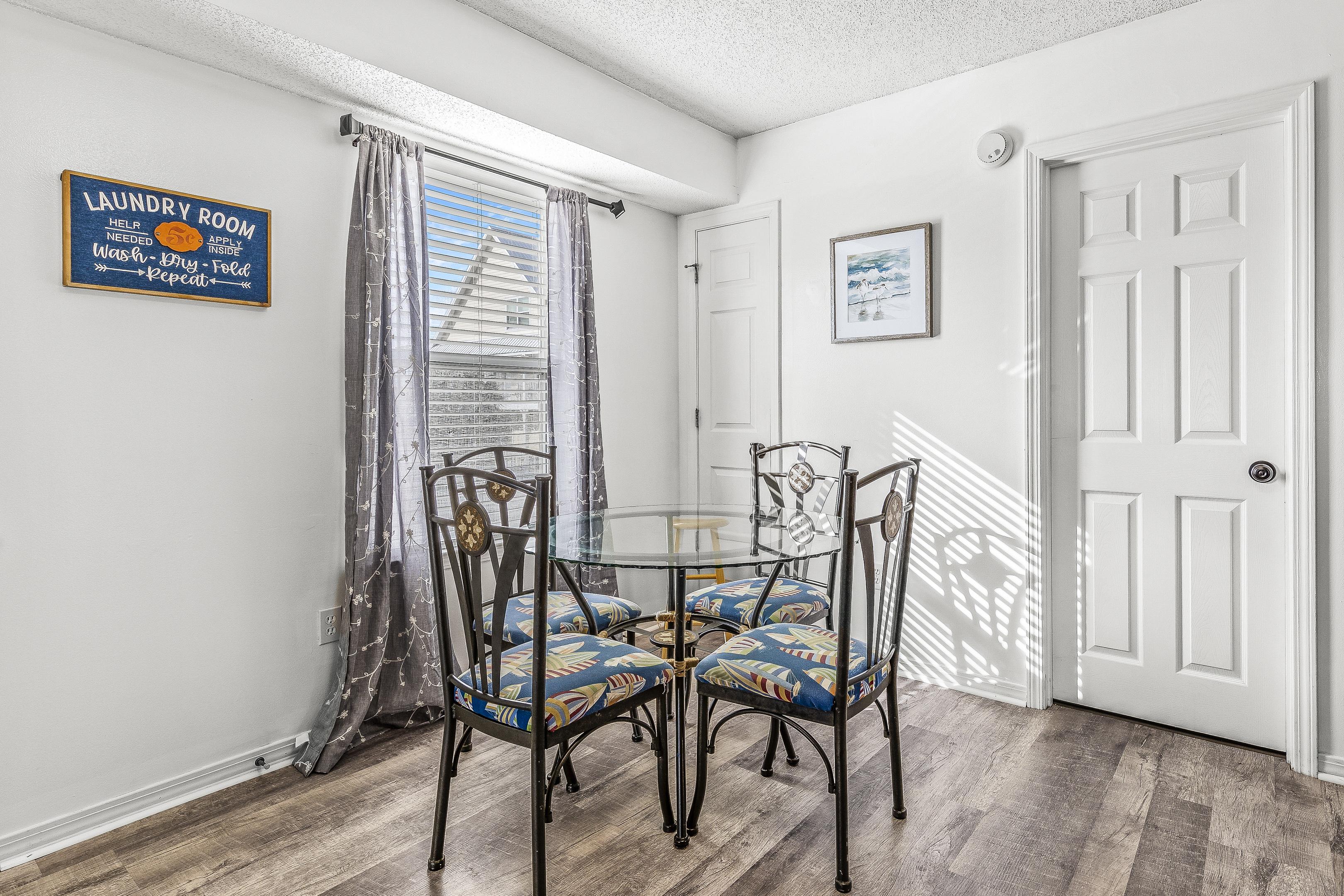 This beach getaway is a 2-level vacation home. First floor comes with an ocean-blue colored living area with a cozy sofa, side table with lamp and matching coffee table. All needed essentials are provided, including in-unit washer and dryer. The kitchen is a welcoming space that allows you to make a home-cooked meal or gather around for some take-out. There are so many restaurants and eatiries close by, you'll have plenty of options to choose from and enjoy.