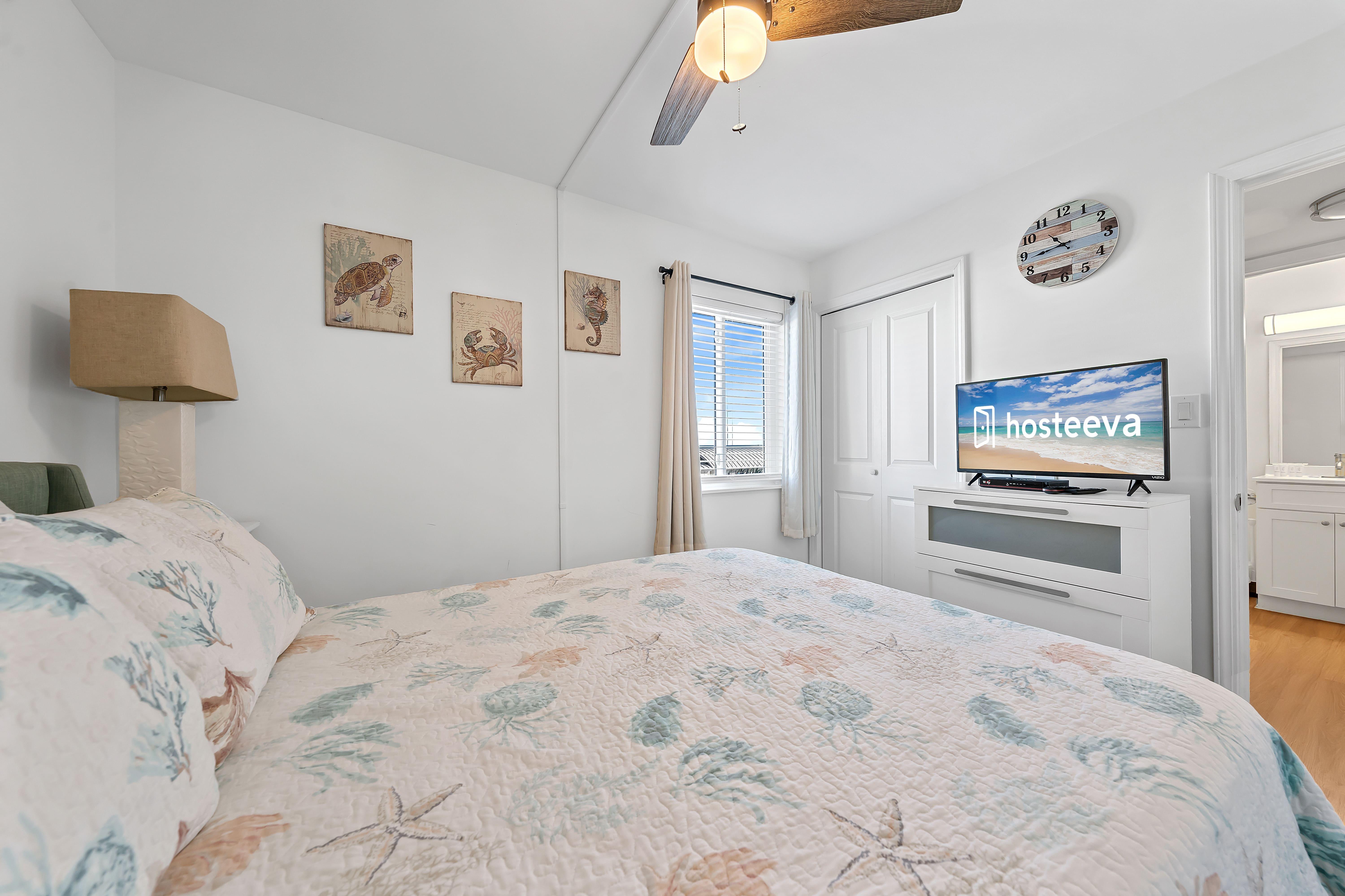 Inside, the condo features a comfortable queen bed in the bedroom, supplemented by a sofa bed and bunk bed, accommodating families or small groups with ease. The living area is designed with modern comforts, and the kitchen is fully equipped for those who enjoy cooking.
