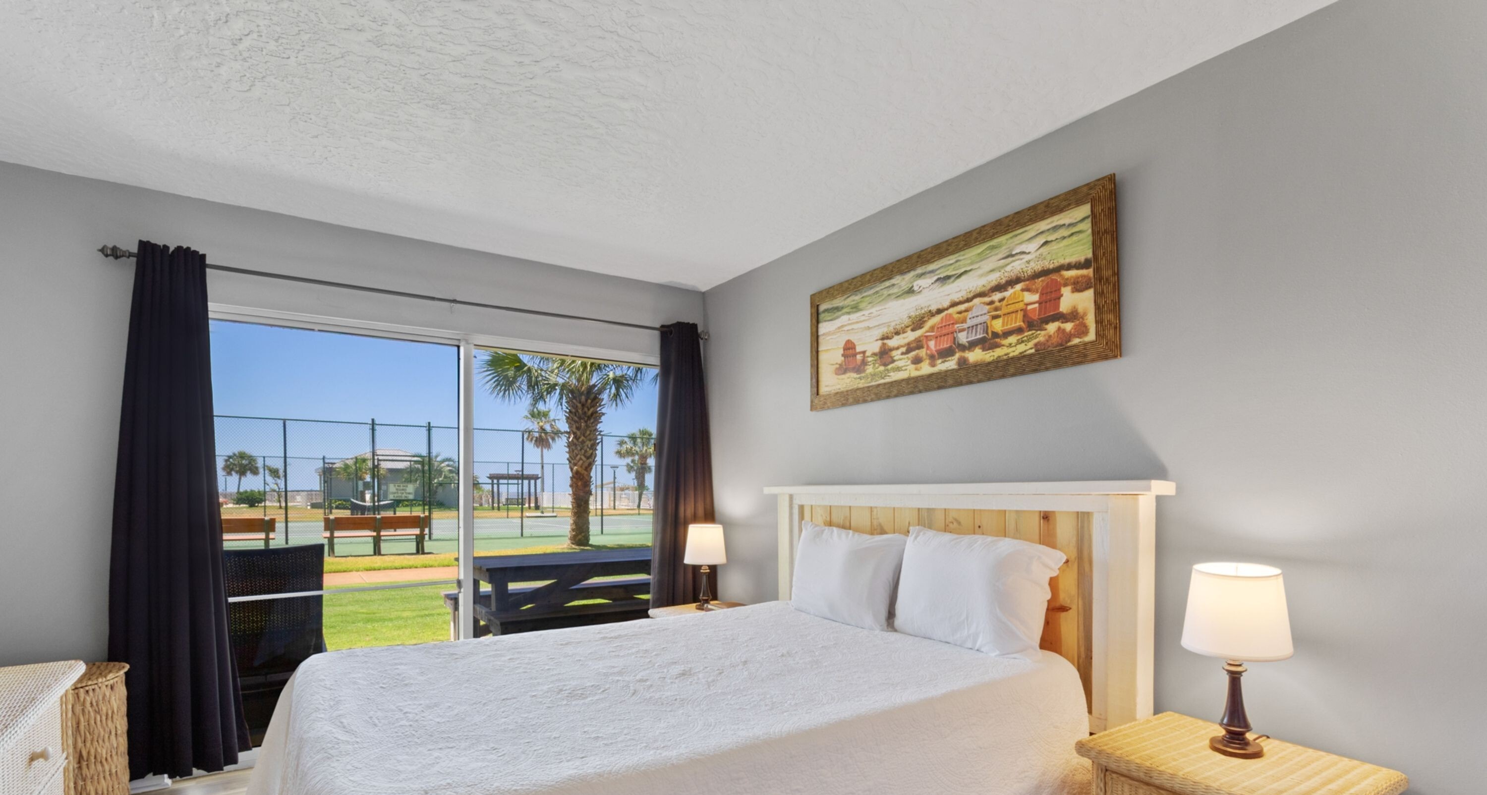 The bedrooms are designed for restful nights, with a queen bed in one and twin beds in the other. For your leisure, the property includes access to both indoor and outdoor pools, a hot tub, and direct beach access for sun-soaked days by the water.