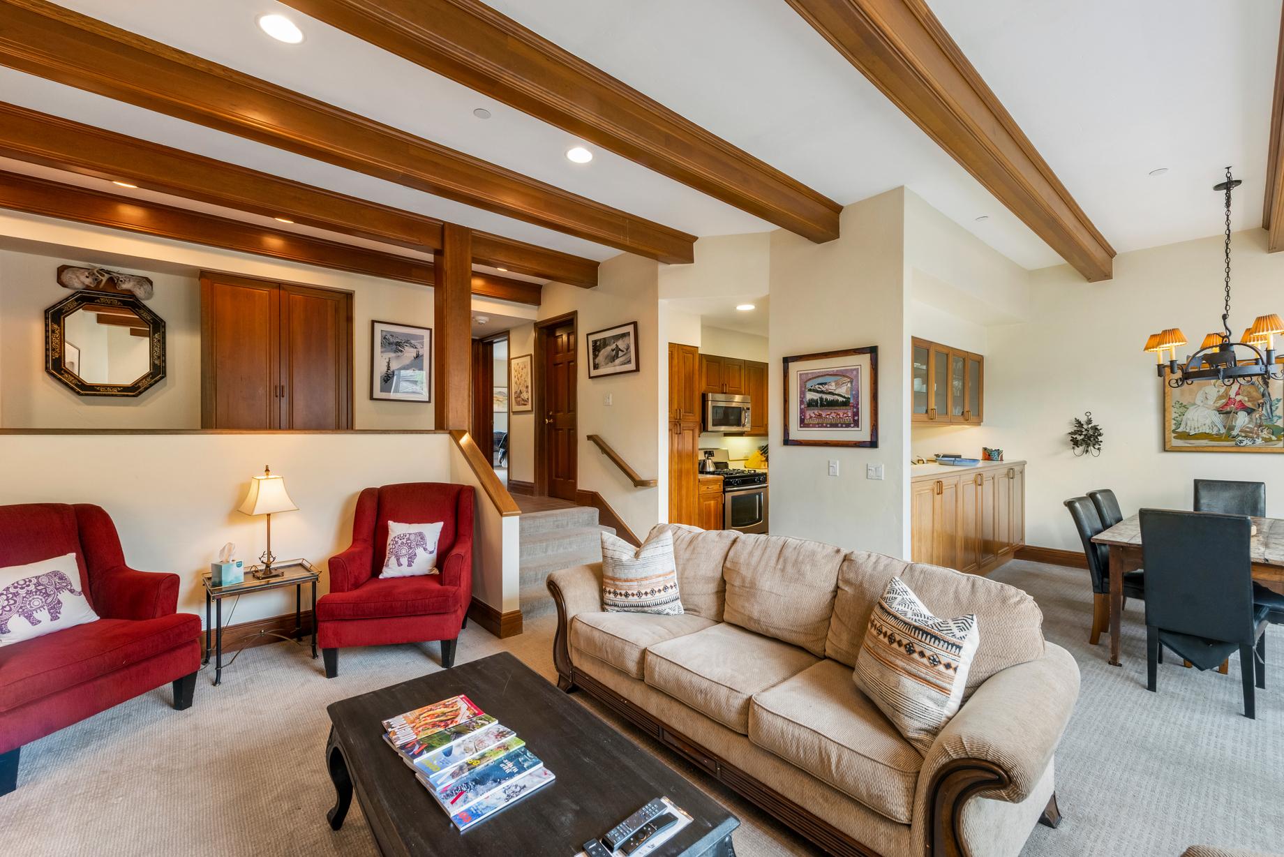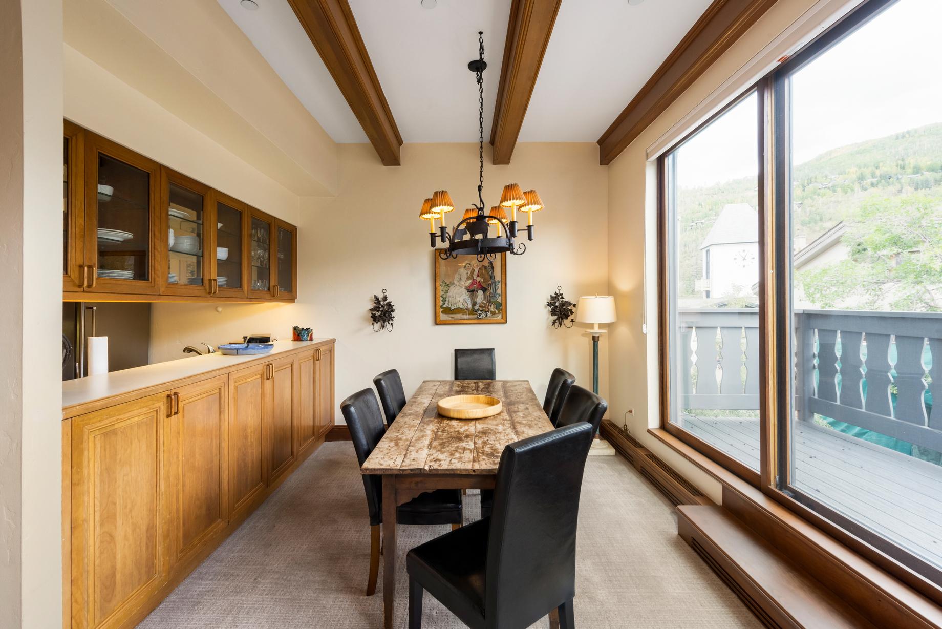 Located in the center of Vail Village - Plaza Lodge 4 is a beautifully appointed 3-bedroom, 3-bath condo located in the heart of Vail Village on Bridge Street—just a one-minute walk to Gondola One. With elegant wooden ceiling beams, floor-to-ceiling windows, and private balconies offering scenic mountain views, this condo is the perfect retreat for those wanting to immerse themselves in Vail’s vibrant atmosphere. Enjoy world-class dining, shopping, and skiing right outside your door, all while relaxing in a comfortable and spacious alpine setting.
