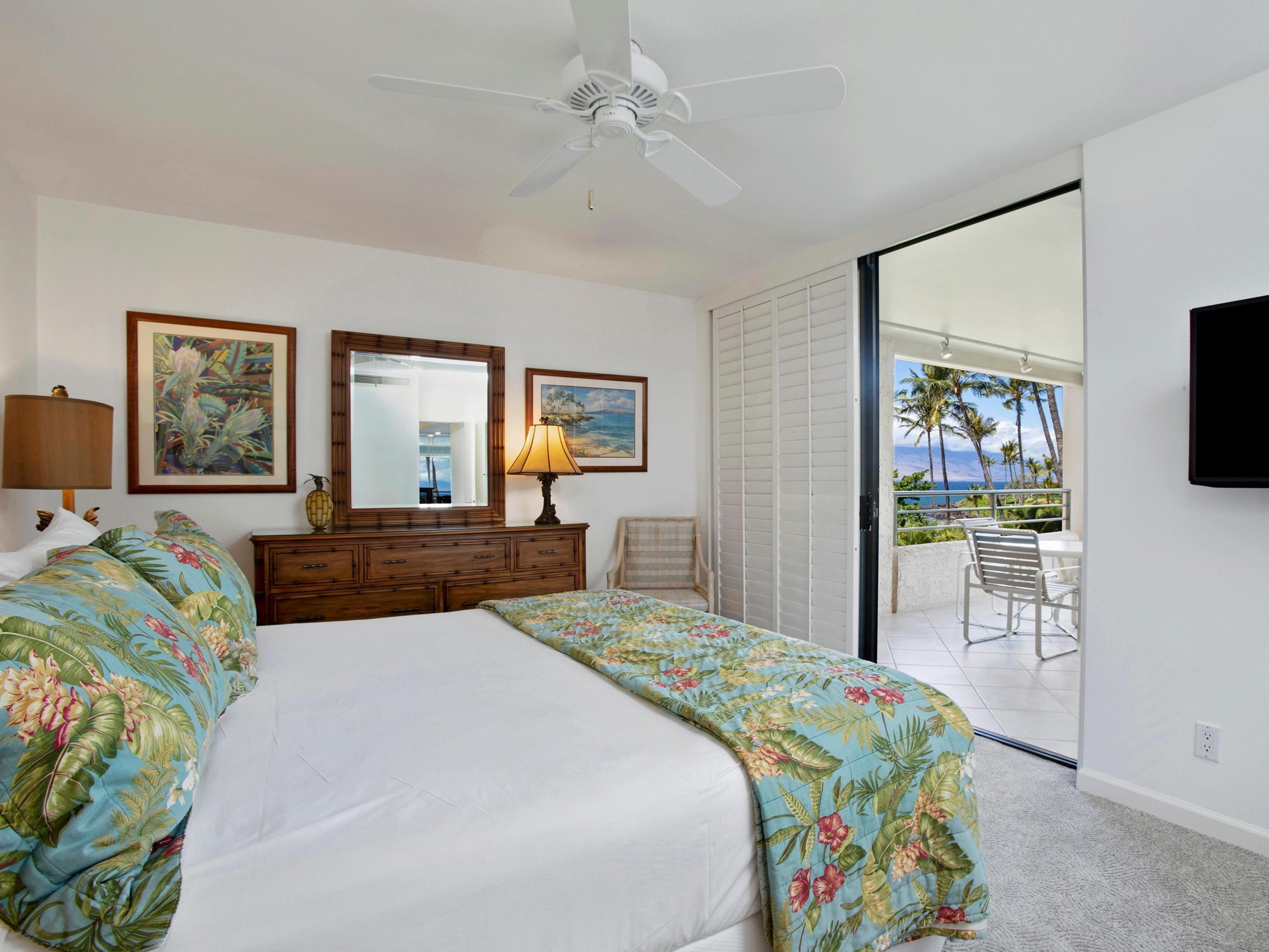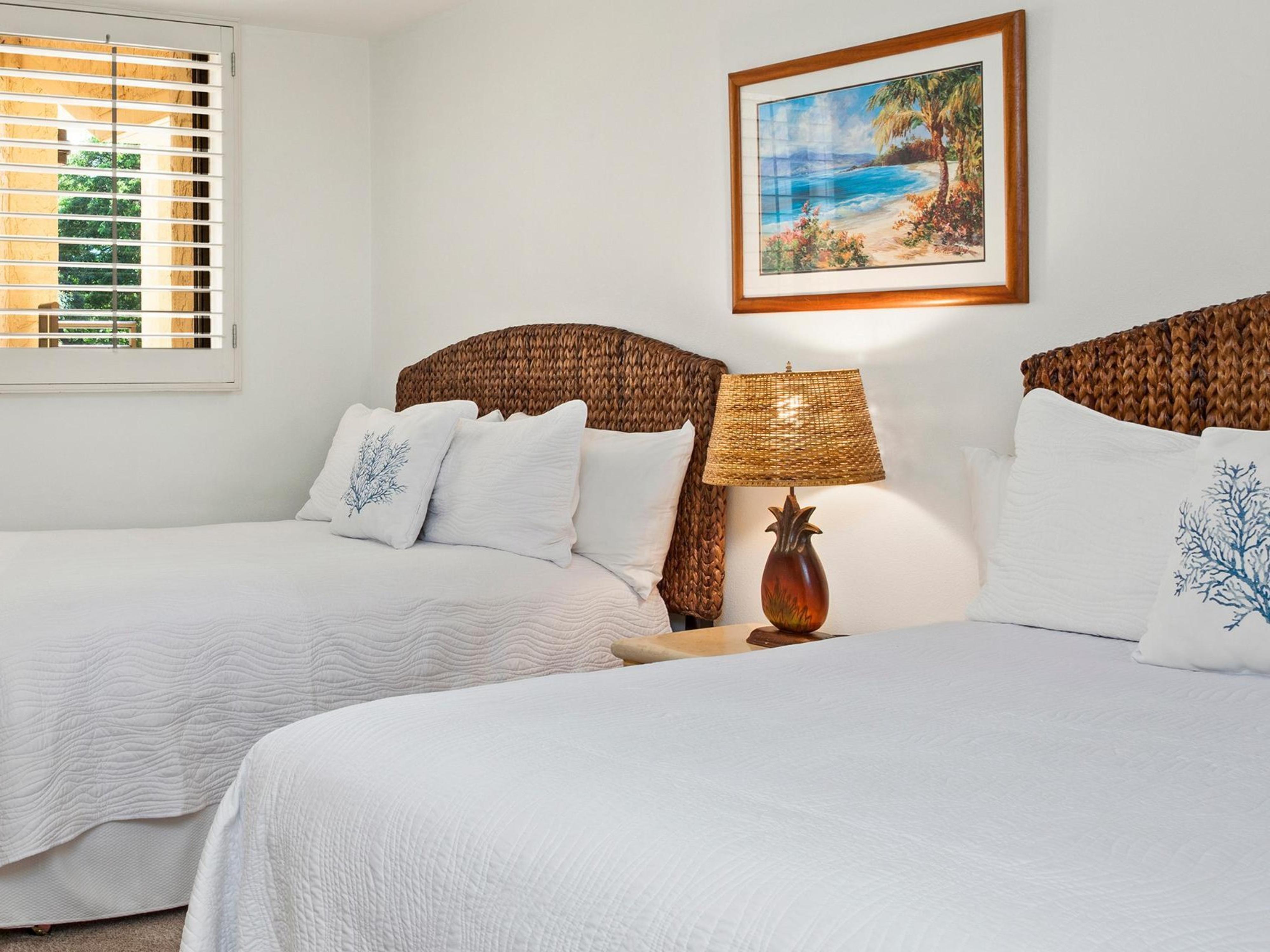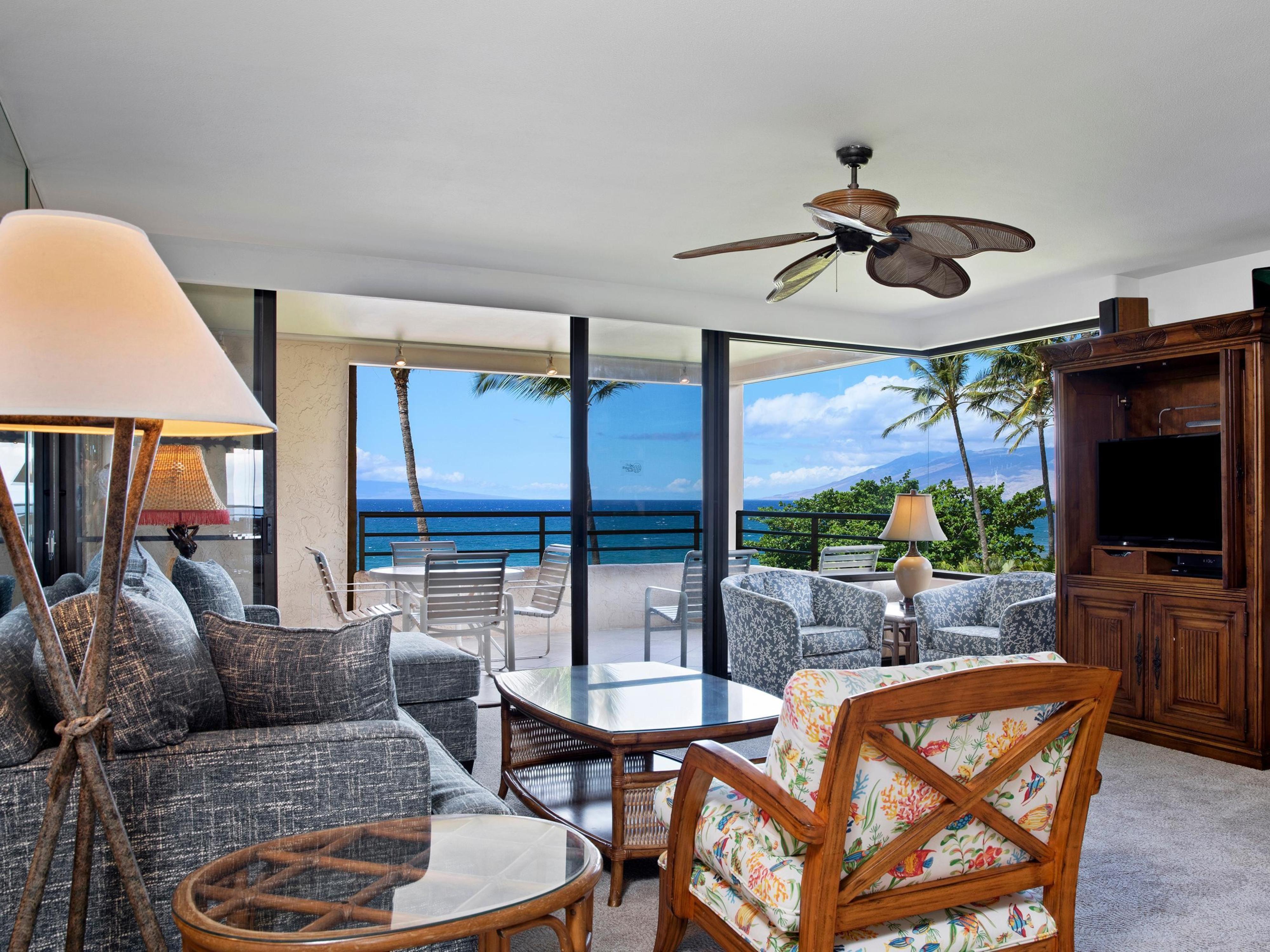 Welcome to the Polo Beach Club 407, your perfect oasis in Wailea, Hawaii. This stunning two-bedroom, oceanfront condo offers a luxurious retreat for up to six guests. Step inside to find a spacious, open-concept living area with a cozy sofa bed, perfect for unwinding after a day at the beach. The master bedroom features a plush king bed, while the second bedroom offers two comfortable double beds, ensuring a restful night's sleep for everyone.