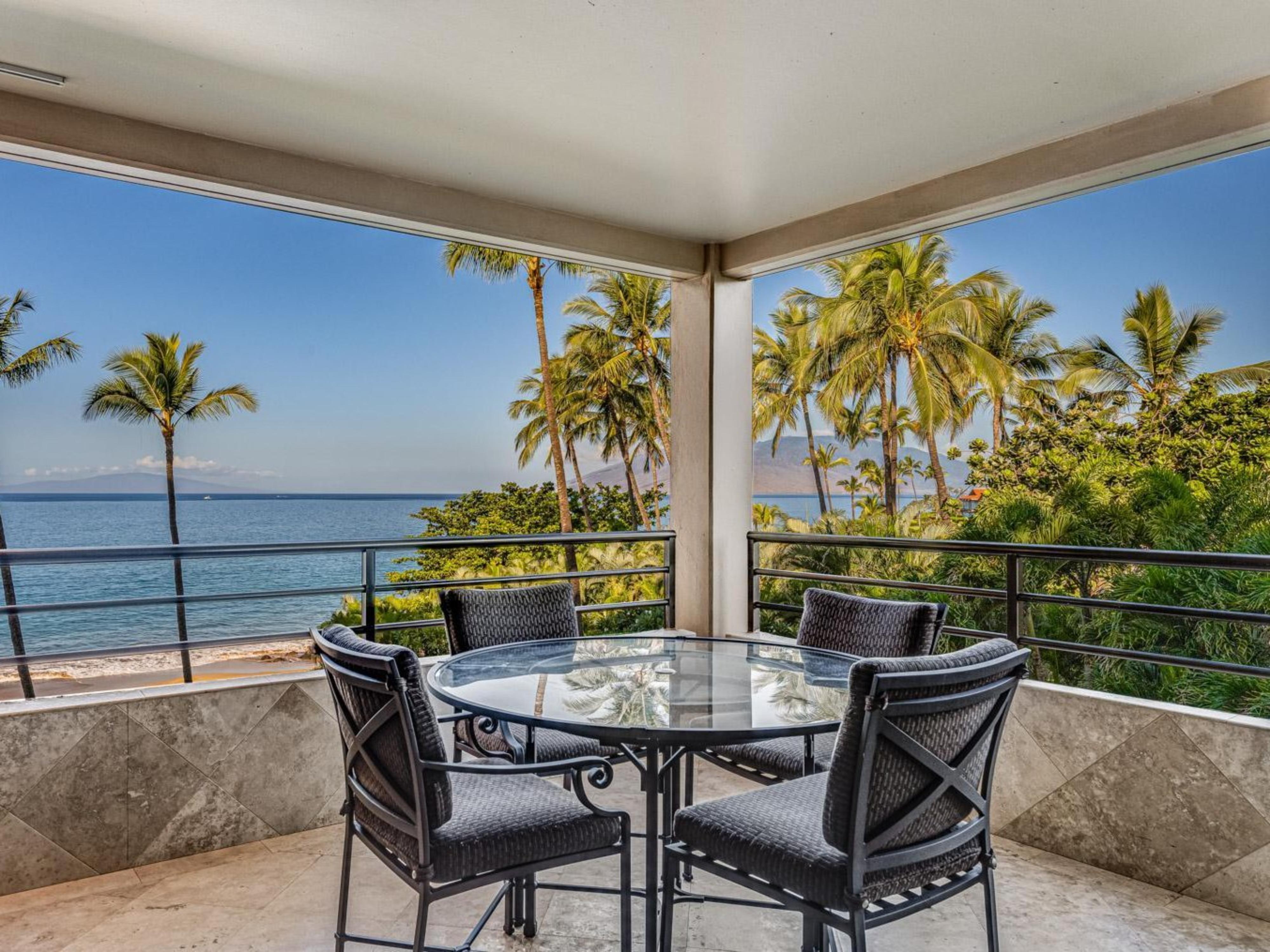 Welcome to the serene Polo Beach Club 408, your perfect oceanfront retreat in Wailea. This stunning 2-bedroom, 2-bathroom condo offers a luxurious escape for up to four guests. Step into the open-plan living area, where modern design meets comfort. The living room features plush seating, a flat-screen TV with cable, and a cozy fireplace, perfect for unwinding after a day of adventure.