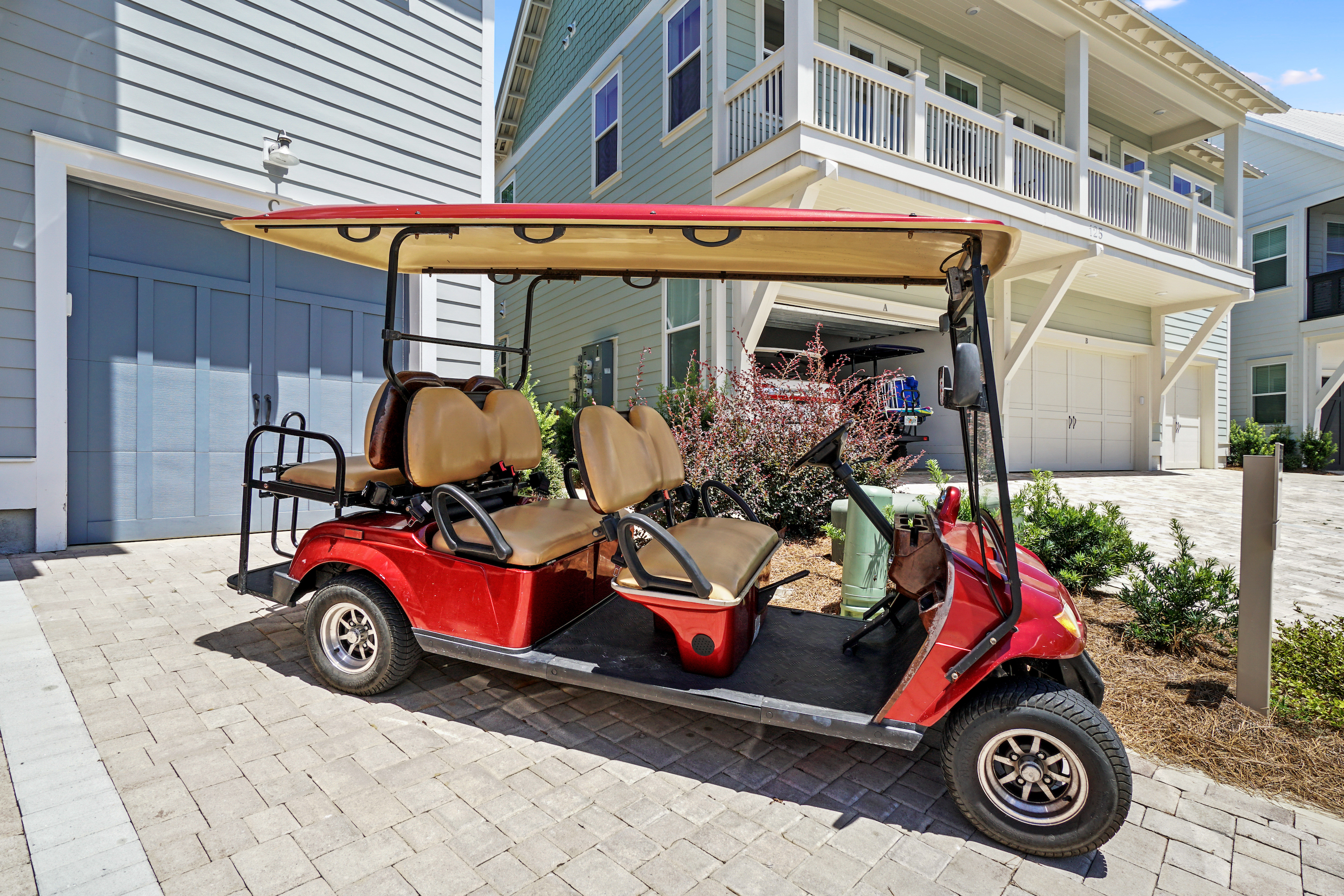 Prominence 30A pet friendly rental, The Sea Lily, located in Watersound, Florida by Panhandle Getaways is a 2 bedroom, 2 bathroom townhome complete with all of the conveniences of home. 6 seater golf cart named, Greased Lightning, included along with 4 bikes for use during your stay.