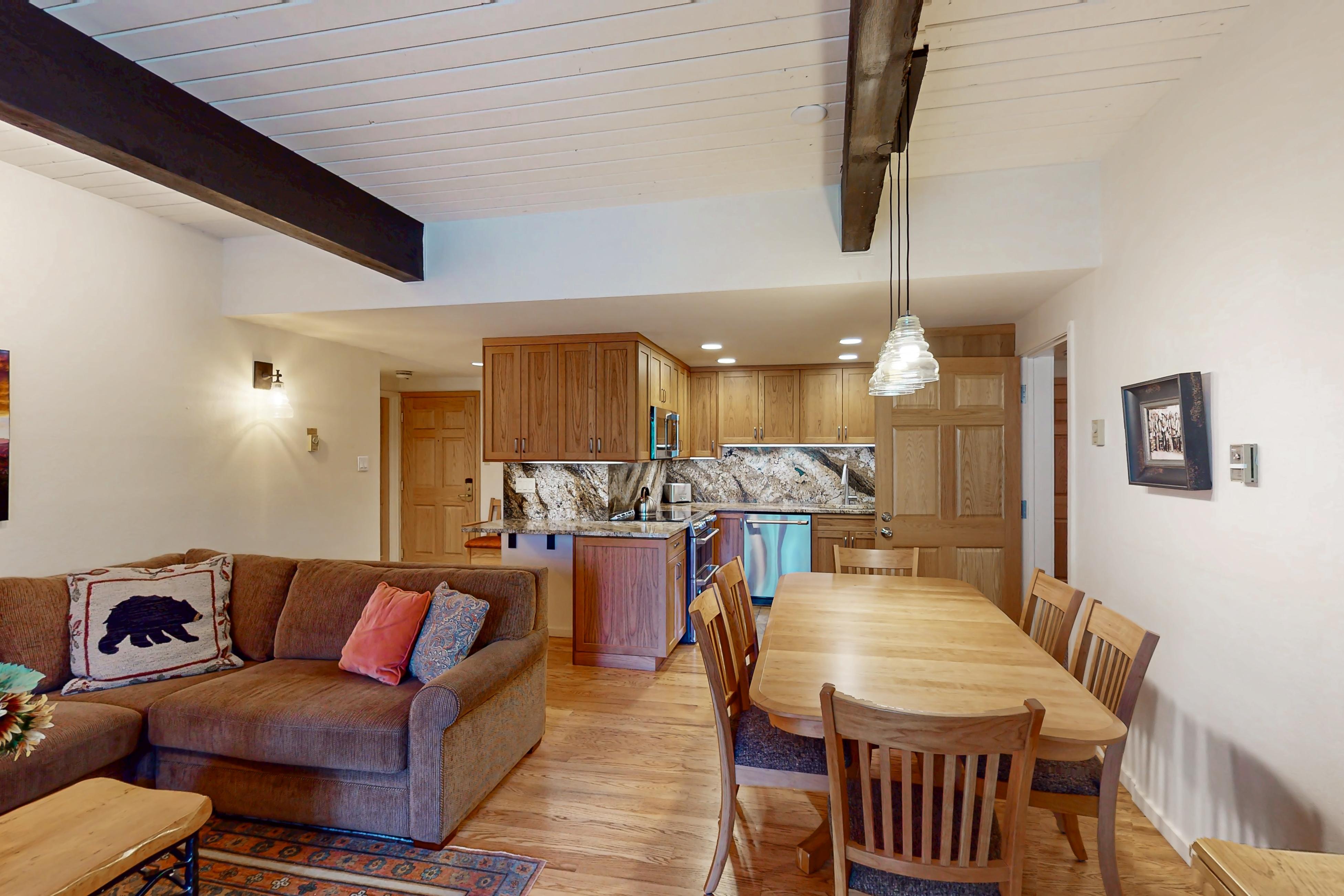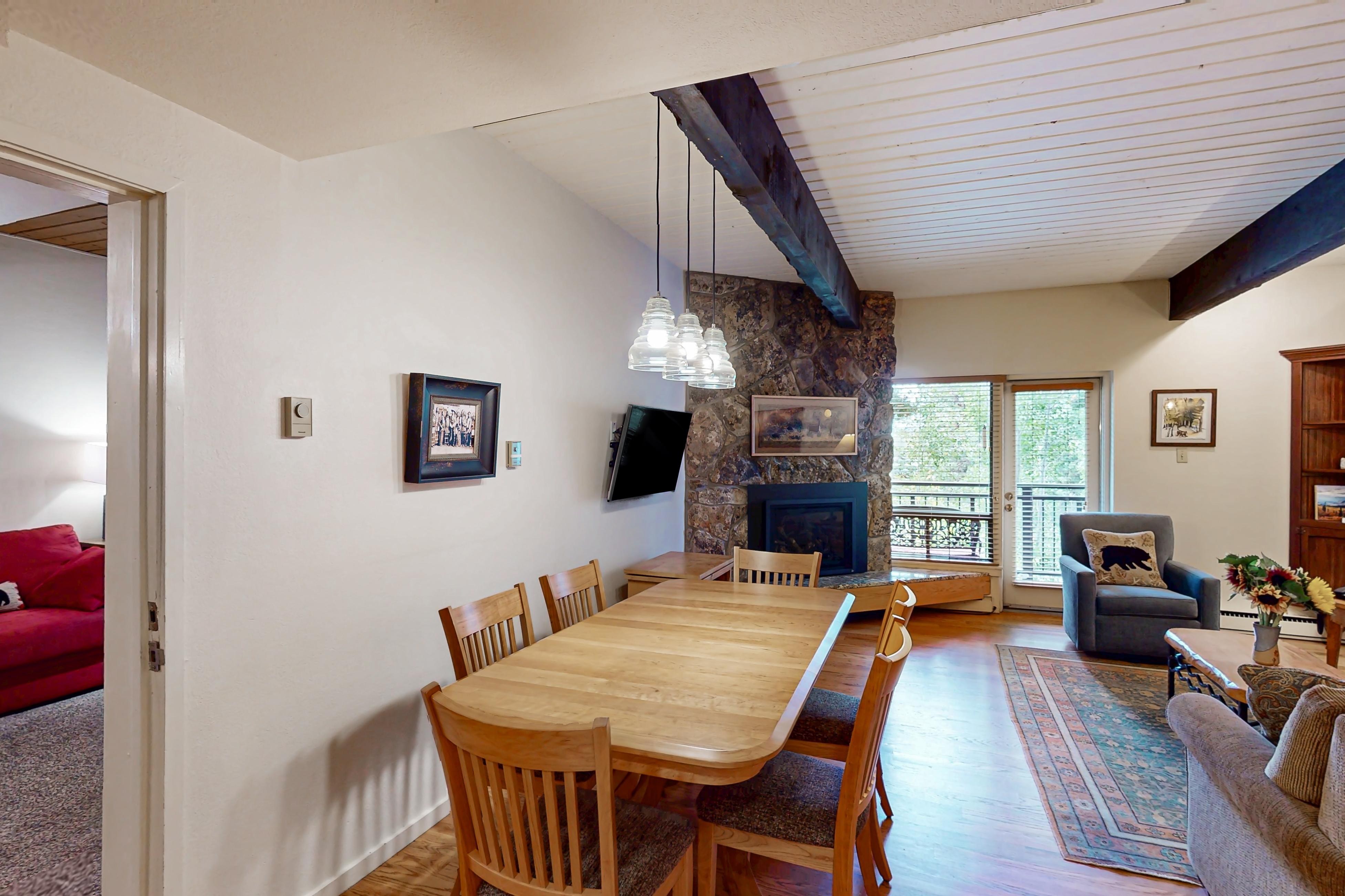 Make the most of your time in Steamboat Springs by settling into this beautiful condo mere steps from the base of Steamboat Ski Resort. Between the gas fireplace in the living room, the outdoor balcony, and the on-site hot tub and barbecue area at Ptarmigan House, you'll have ample places to relax. Return home after a day of hiking, mountain biking, skiing, or snowboarding to prepare a home-cooked meal in the fully equipped kitchen and bring a glass of wine out to the balcony afterwards. When the stars begin to come out and the mountain air turns chilly, come inside to gather around the fire, break out a board game, or find a movie to watch on the wall-mounted flatscreen TV.