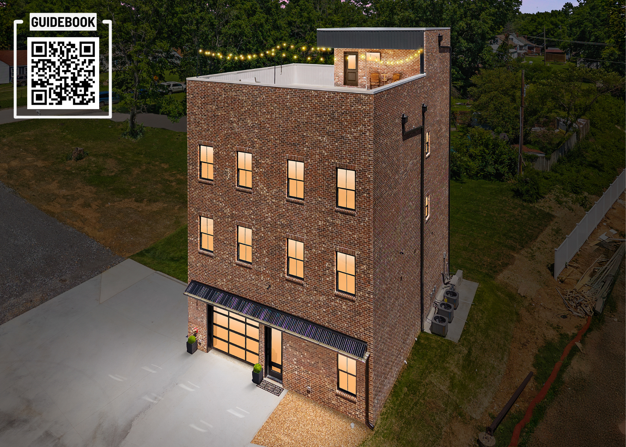 The Queen's Quarters hosted by Byers and Harvey is a thoughtfully designed three-story duplex that offers flexible options for any occasion. This listing includes a 2-bedroom, 1-bathroom unit and a lit rooftop terrace that offers skyline views of the city. There is another half-bath on the top floor that is shared with the building. The ground level may be rented separately for corporate events.