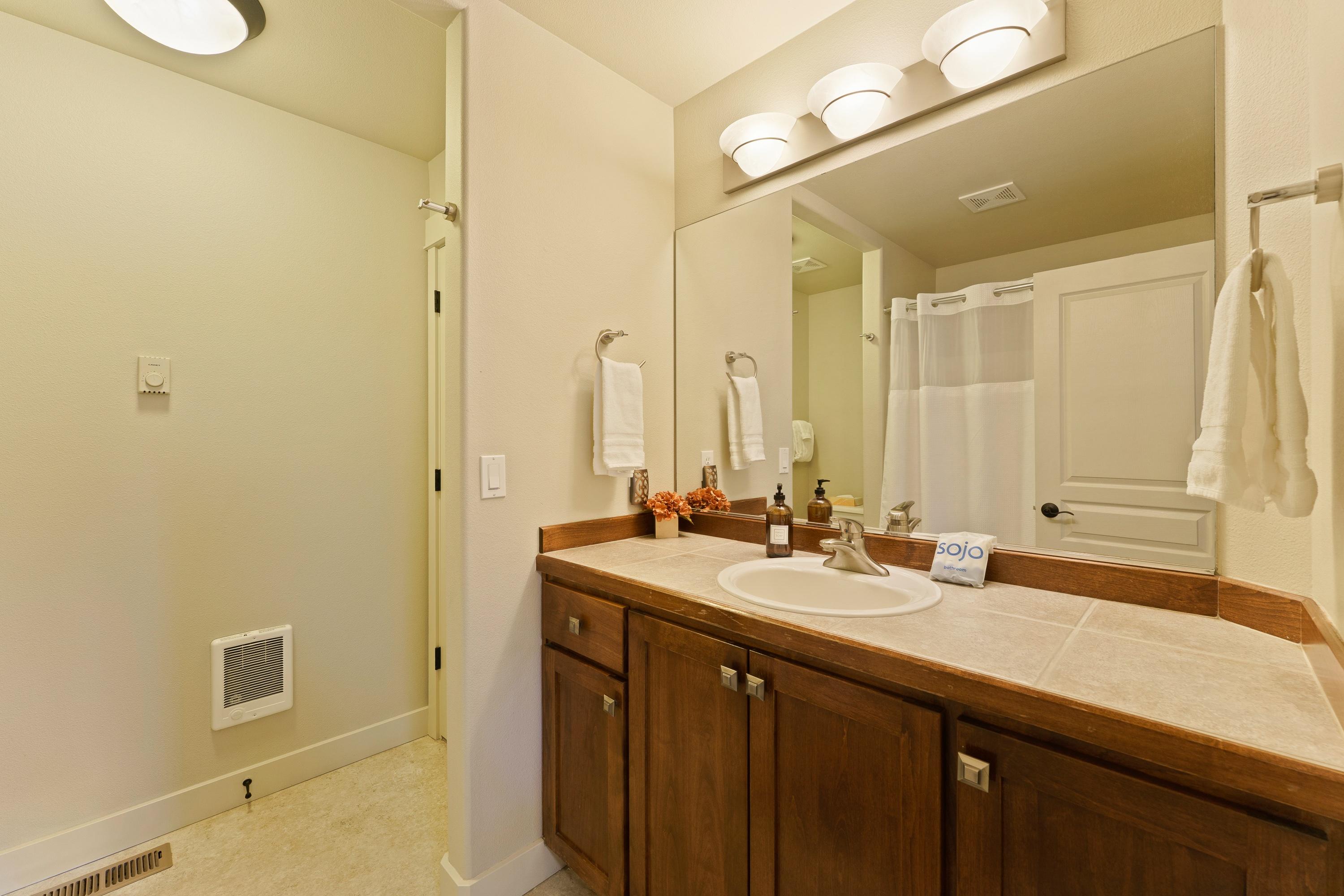 with XL Twin Bunk Bed on Top and access to full bath with tub/shower combo and