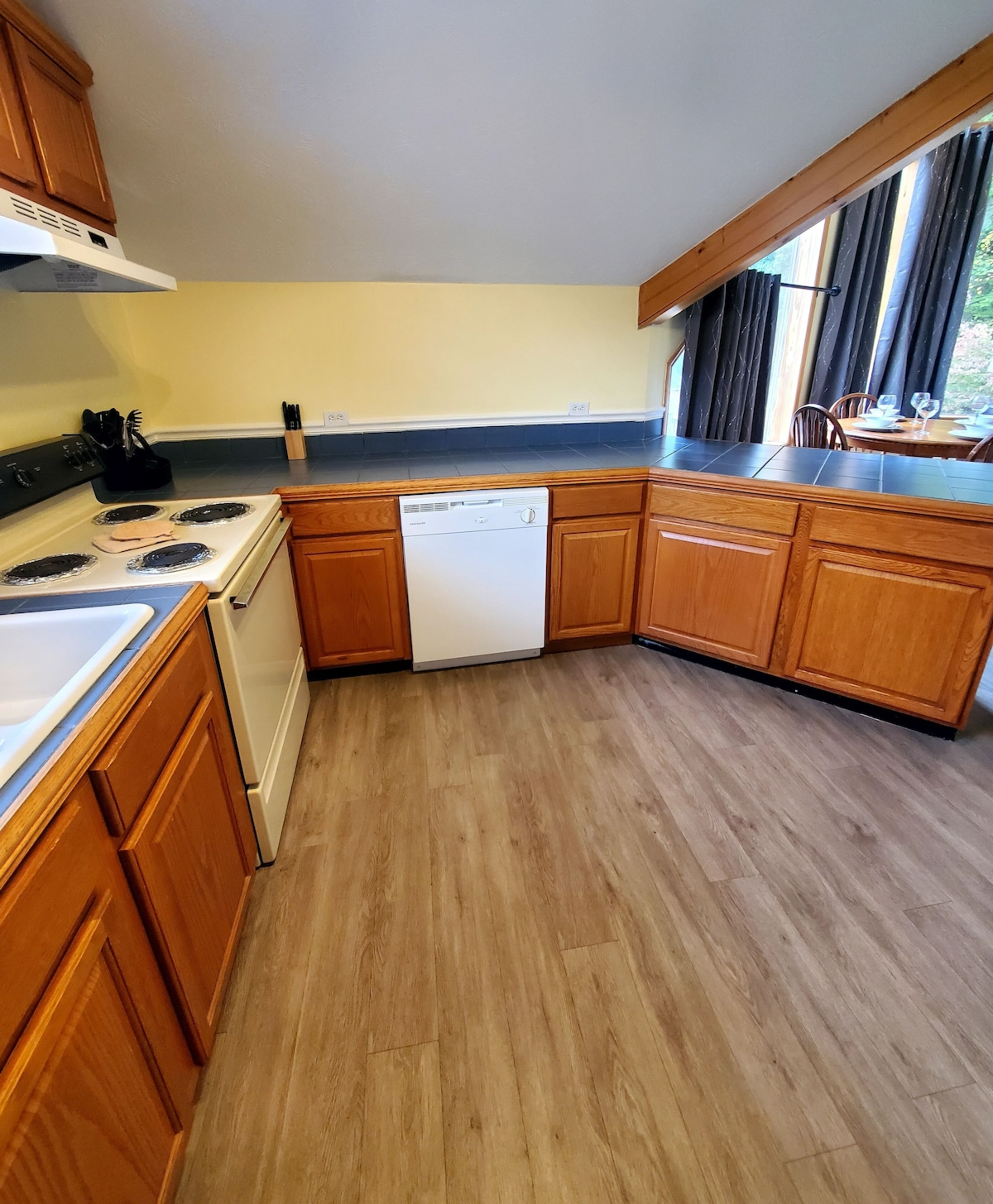 Inside, you'll find a cozy living room featuring a smart TV, ideal for relaxing after a day of exploring. The dining area and equipped kitchen with a dishwasher make it easy to enjoy meals at home. Step out onto the private balcony to take in the fresh mountain air and sweeping views. Comfortable sleeping arrangements accommodate up to four guests with a full-size sleeper sofa, making it perfect for couples, small families, or friends seeking a memorable mountain getaway.