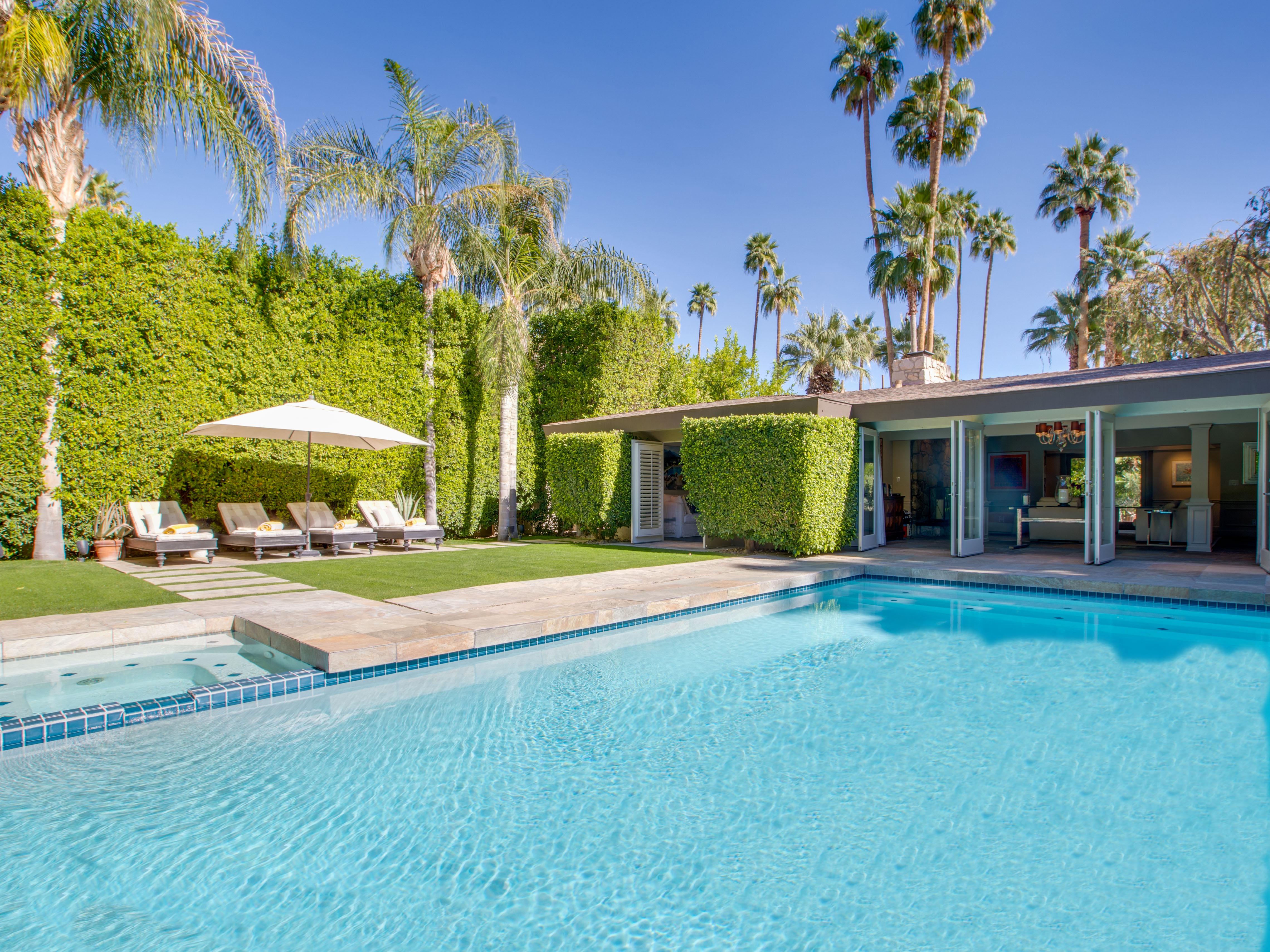 This private home was custom built in 1957 when weekend and seasonal getaways were all the rage for the celebrities and millionaires who flocked to the Deepwell Neighborhood to relax under the radar. Carmen Miranda, Jack Webb, Eva Gabor, William Holden, Loretta Young and Julie London all had estates here. Even hot dog king Oscar Meyer owned a place in Deepwell. Today, Deepwell remains one of the most exclusive neighborhoods in Palm Springs - known for its impressive estate-like properties that feature tall privacy hedges, glamorous swimming pools and iconic architecture.