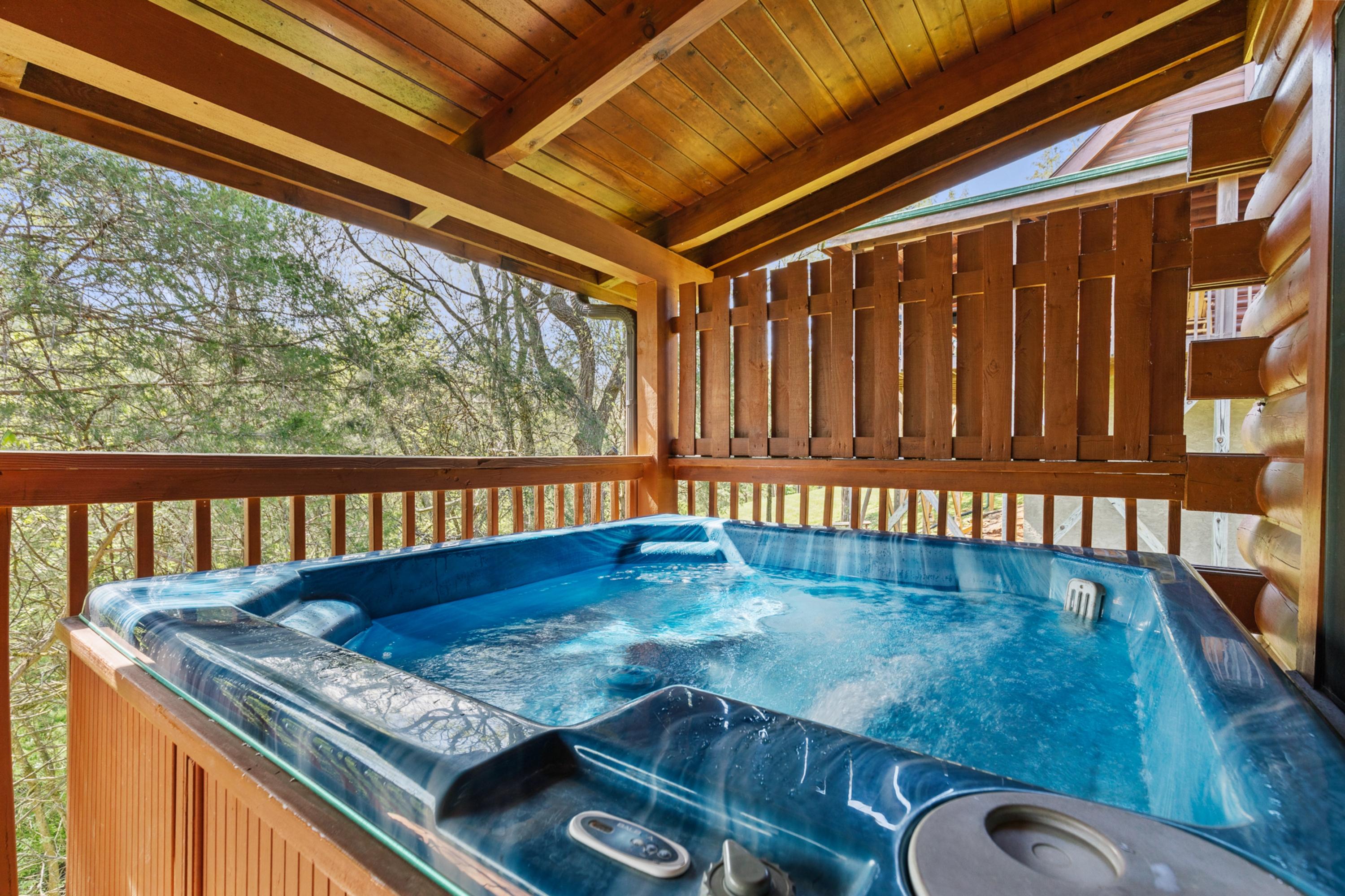 Both bedrooms feature their own full bathrooms, offering comfort and privacy for all guests. Step out onto the porch and unwind in the private hot tub while listening to the gentle sounds of the creek below—a peaceful setting for morning coffee or stargazing at night.
