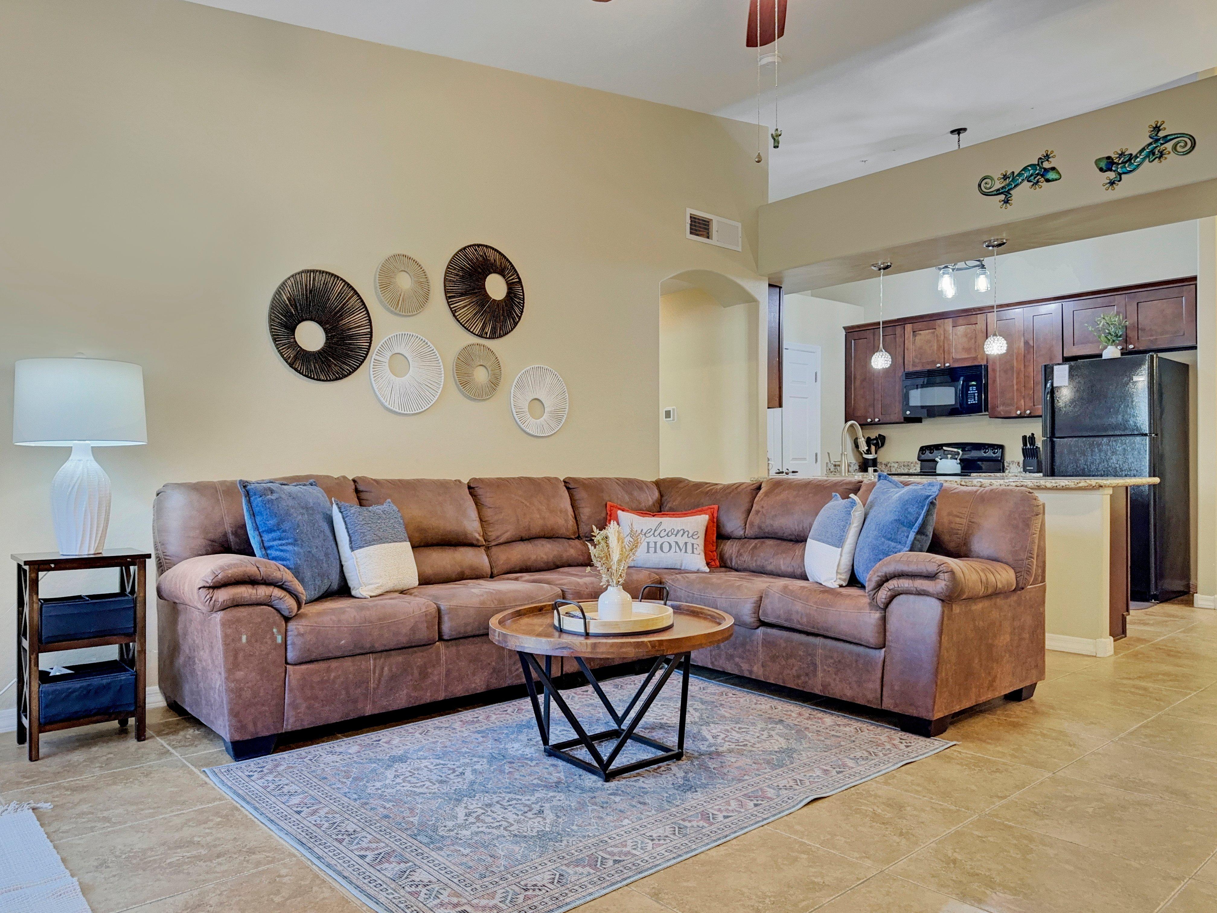 There is no better way to spend your days in Arizona than this gated East Mesa retreat. Golf, Shopping, Medical Center, Easy Freeway Access and more are all just moments away from this luxury condo. With easy access to two heated pools, spa and fitness center, this 3rd floor residence includes comfortable sleeping accommodations for up to 7, along with a private outdoor patio featuring a BBQ grill and outdoor seating. This is the top floor, so you can not hear anyone walking above.