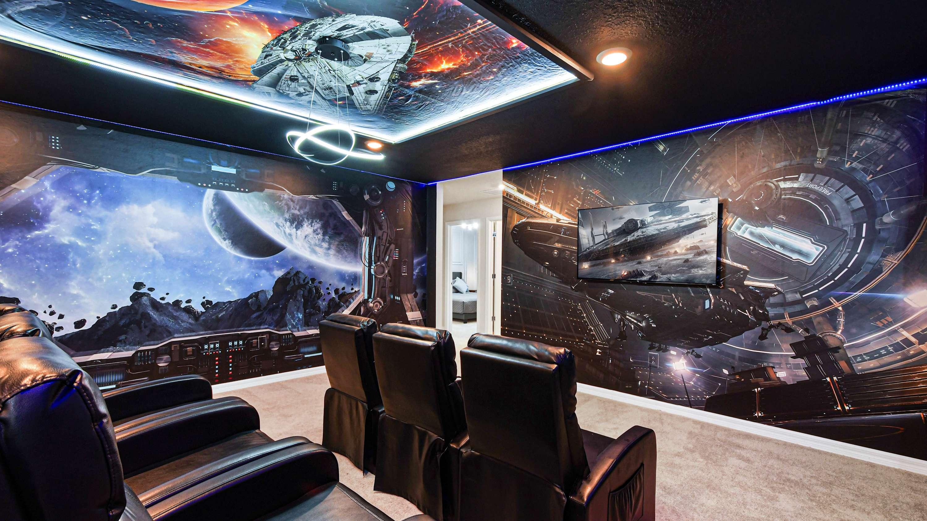 -Multiple Living Areas and Loft: Movie theater and sofa.
