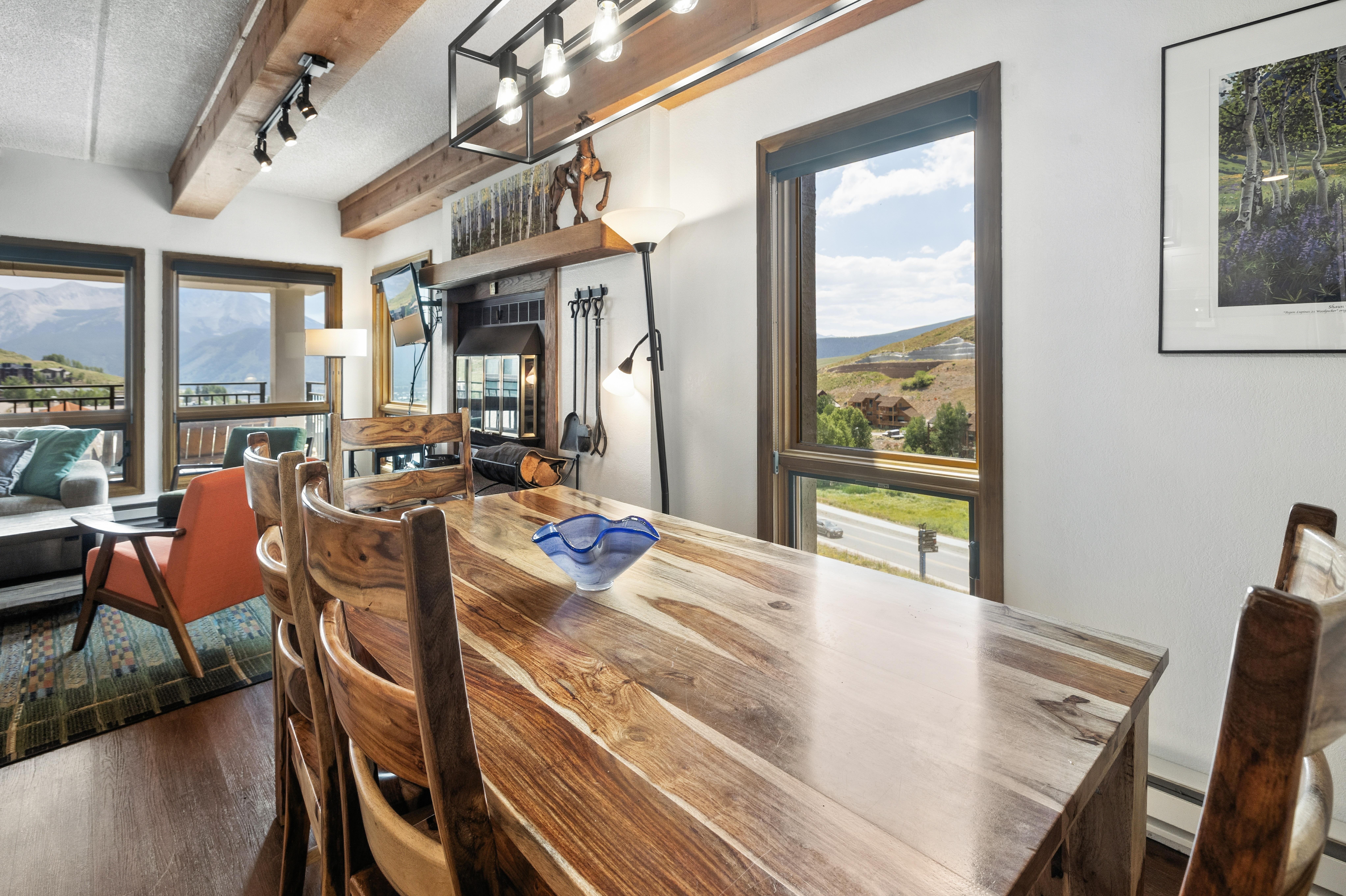 mountain range from the floor to ceiling windows and sliding glass door in the
