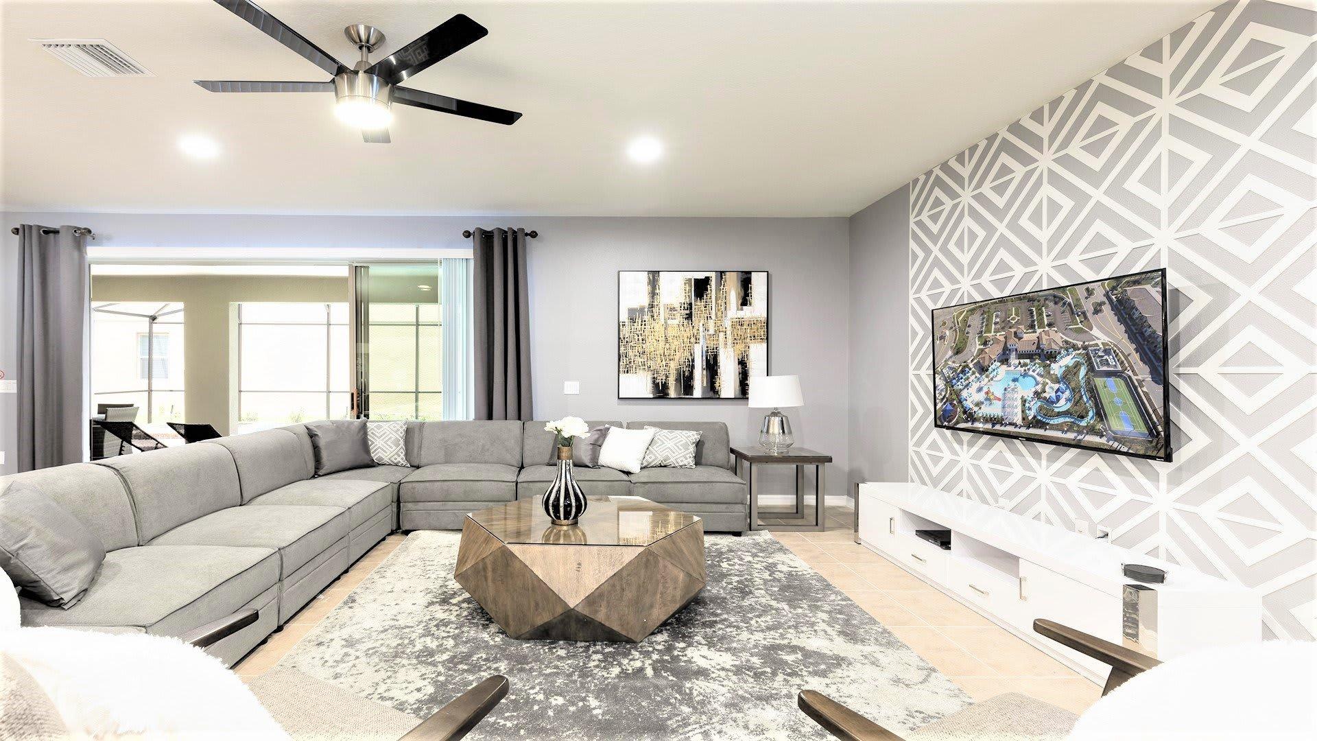 - Main living area and gathering loft have large flat screen TVs