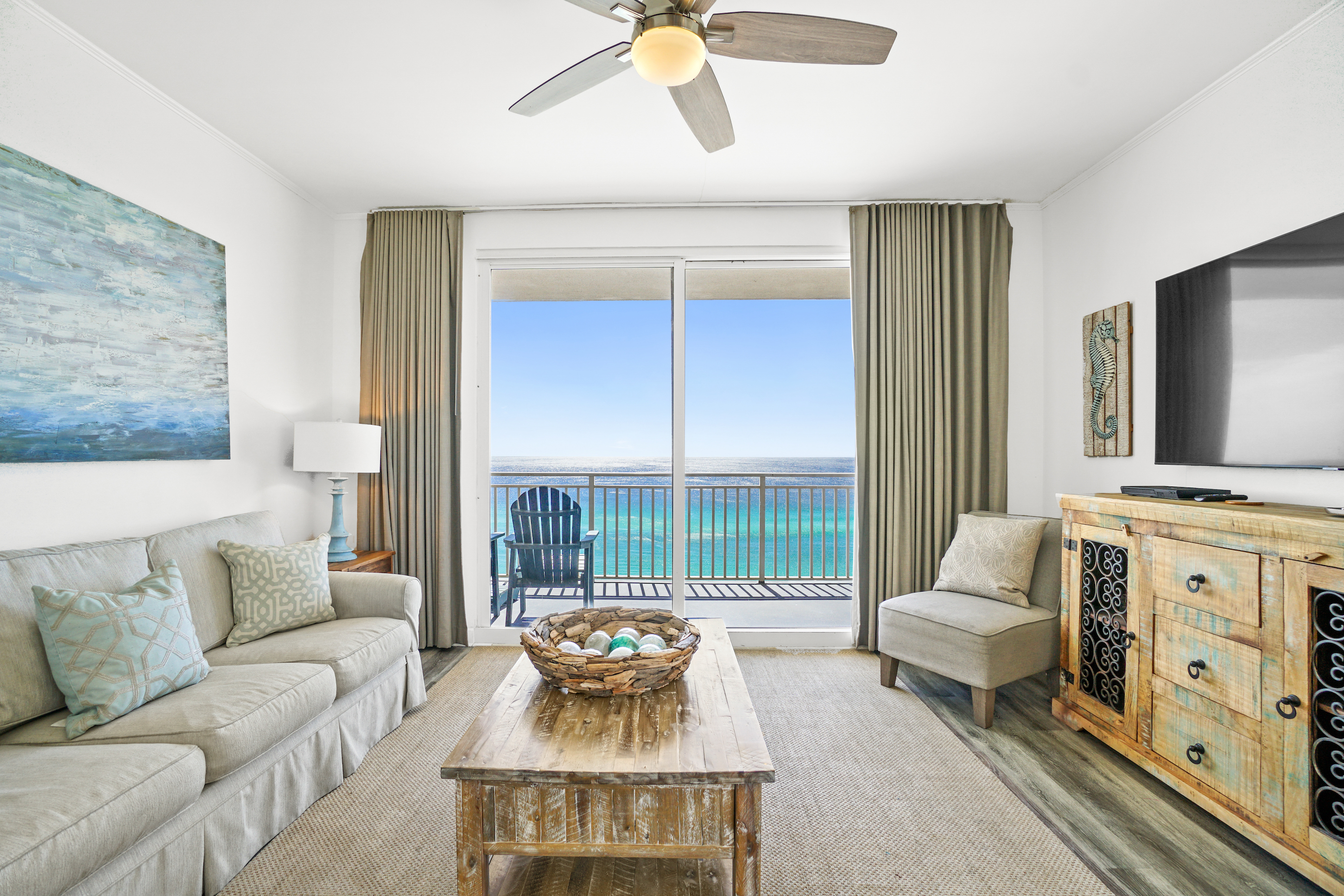 * Large Living Area with Gulf View, Balcony Access, Large TV