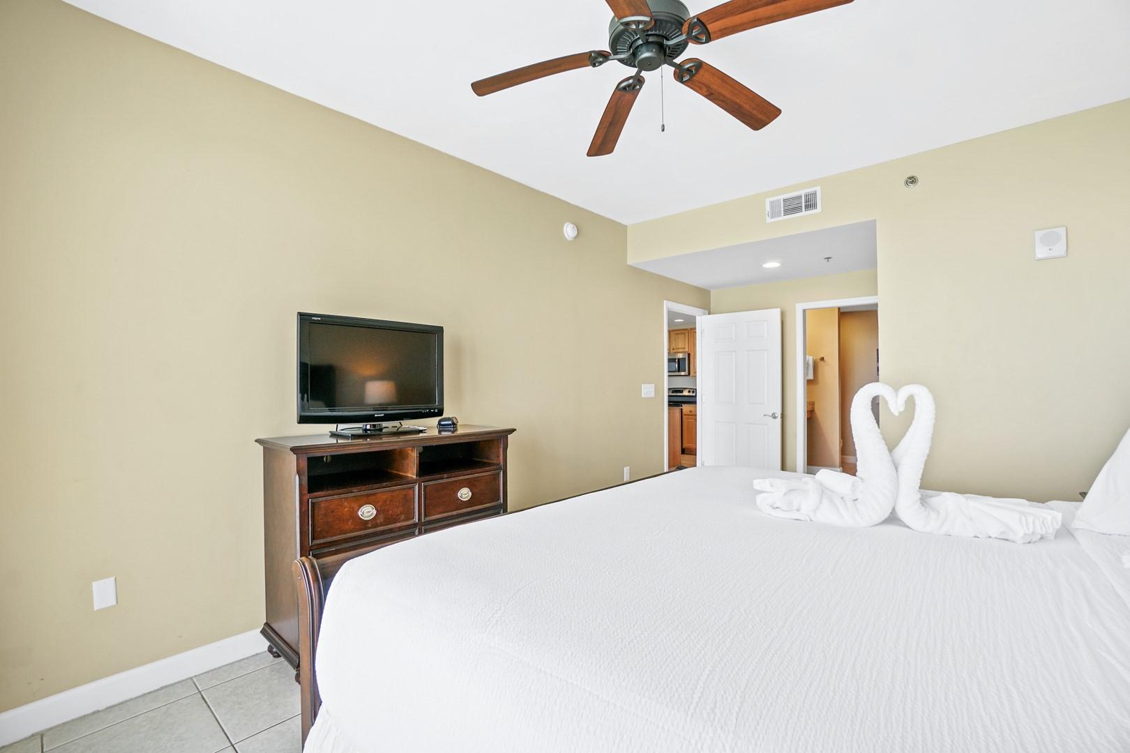 * Bedroom 1 - King Bed, TV, En Suite Bathroom