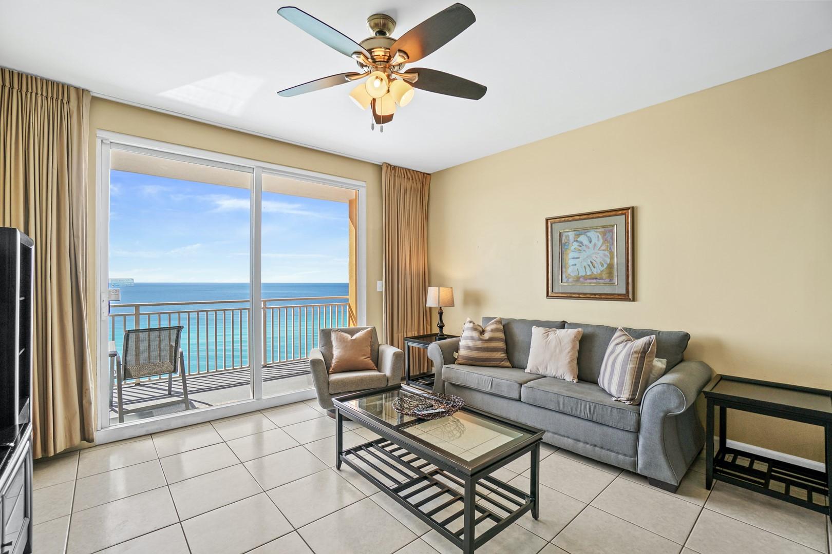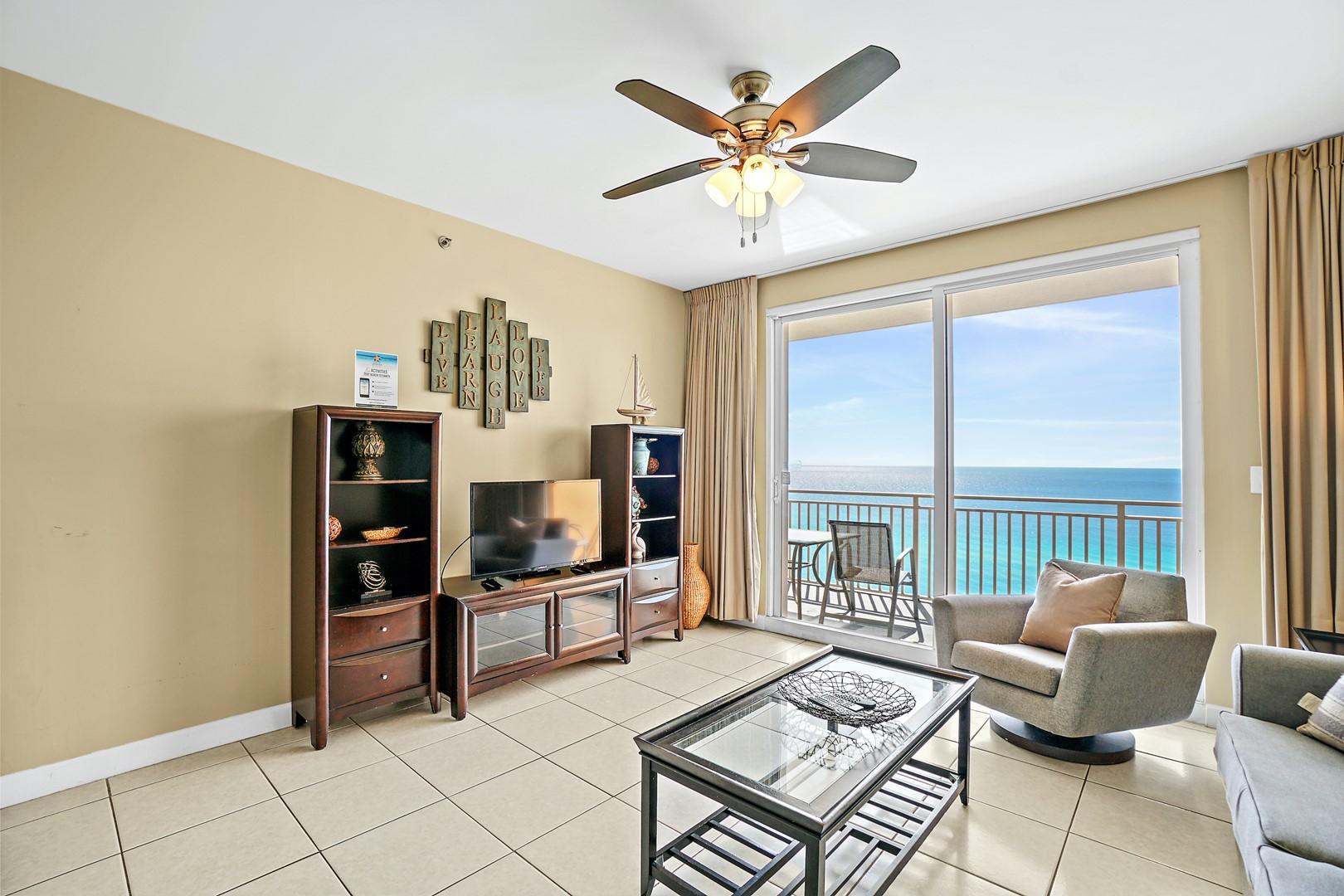 * Living Area - Gulf View, TV, Balcony Access