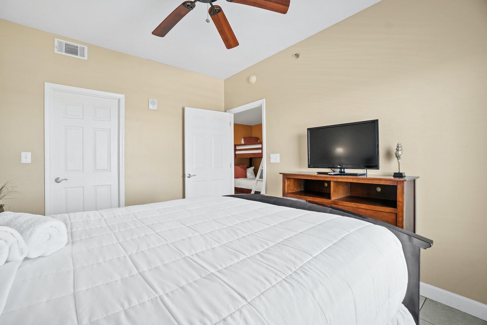 * Bedroom 2 - Queen Bed, TV
