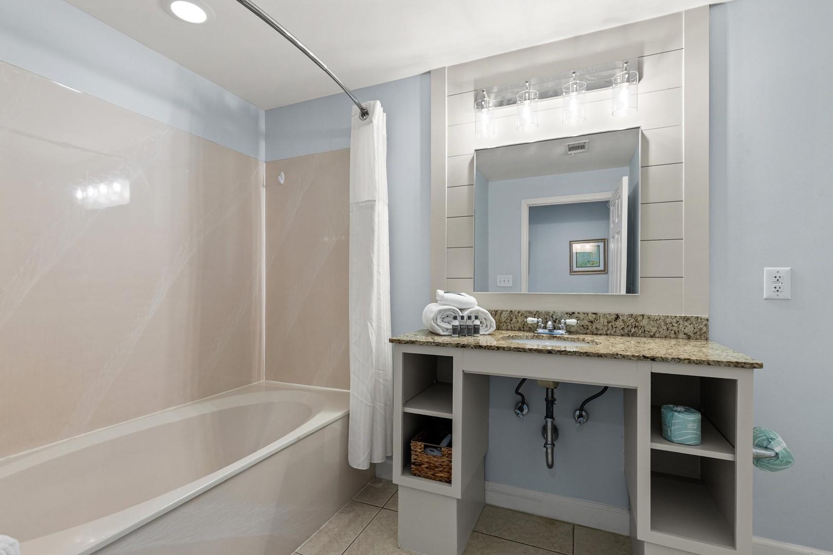 Perfect for larger families or couples traveling together, the condo features a full kitchen and two private suites and a guest bedroom. One of the suites is an efficiency lockout unit, complete with a mini-fridge, sink, microwave, and coffee maker for added convenience.