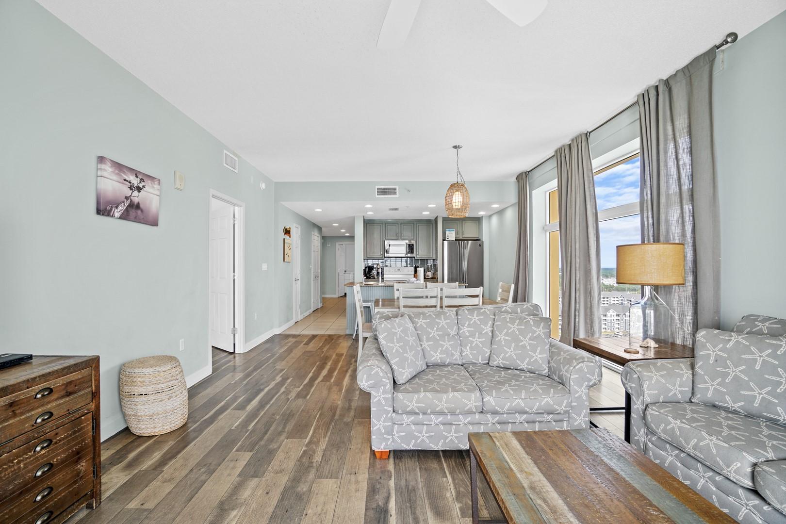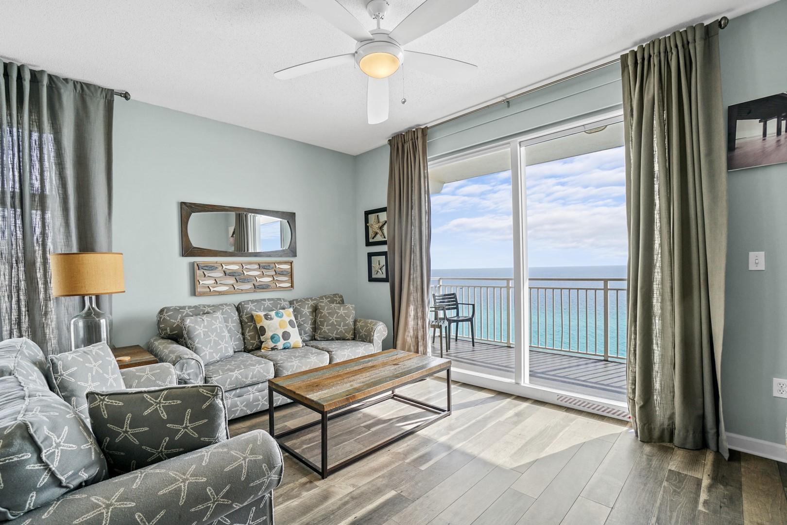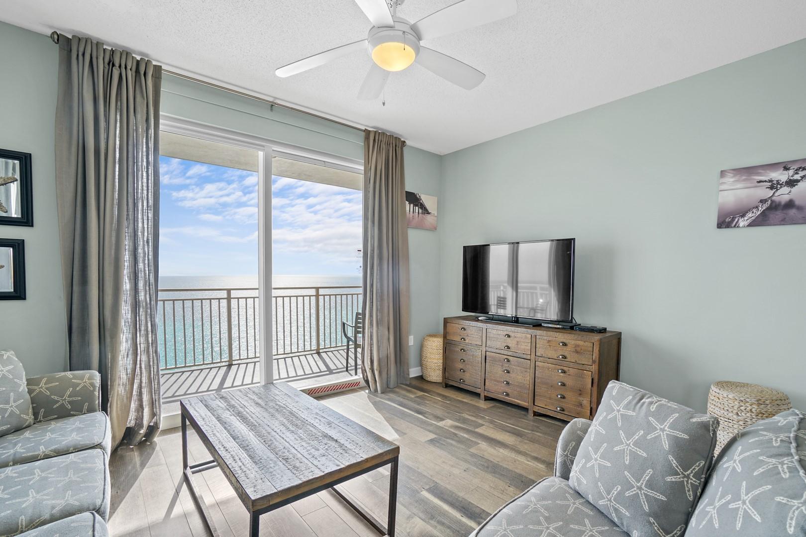 * Living Area - Gulf View, 50" TV, Balcony Access