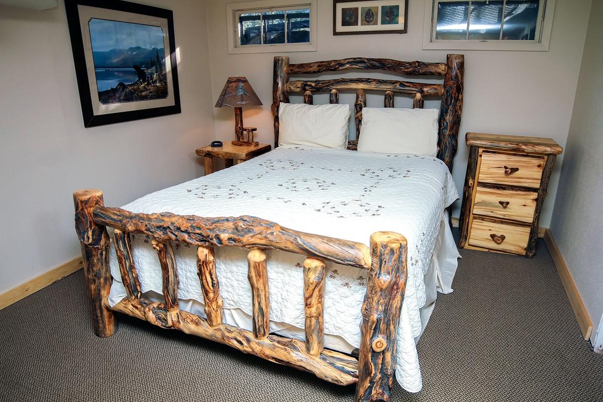 featuring 1 king bed, 2 queen beds, and a queen sleeper sofa Cabin has a full