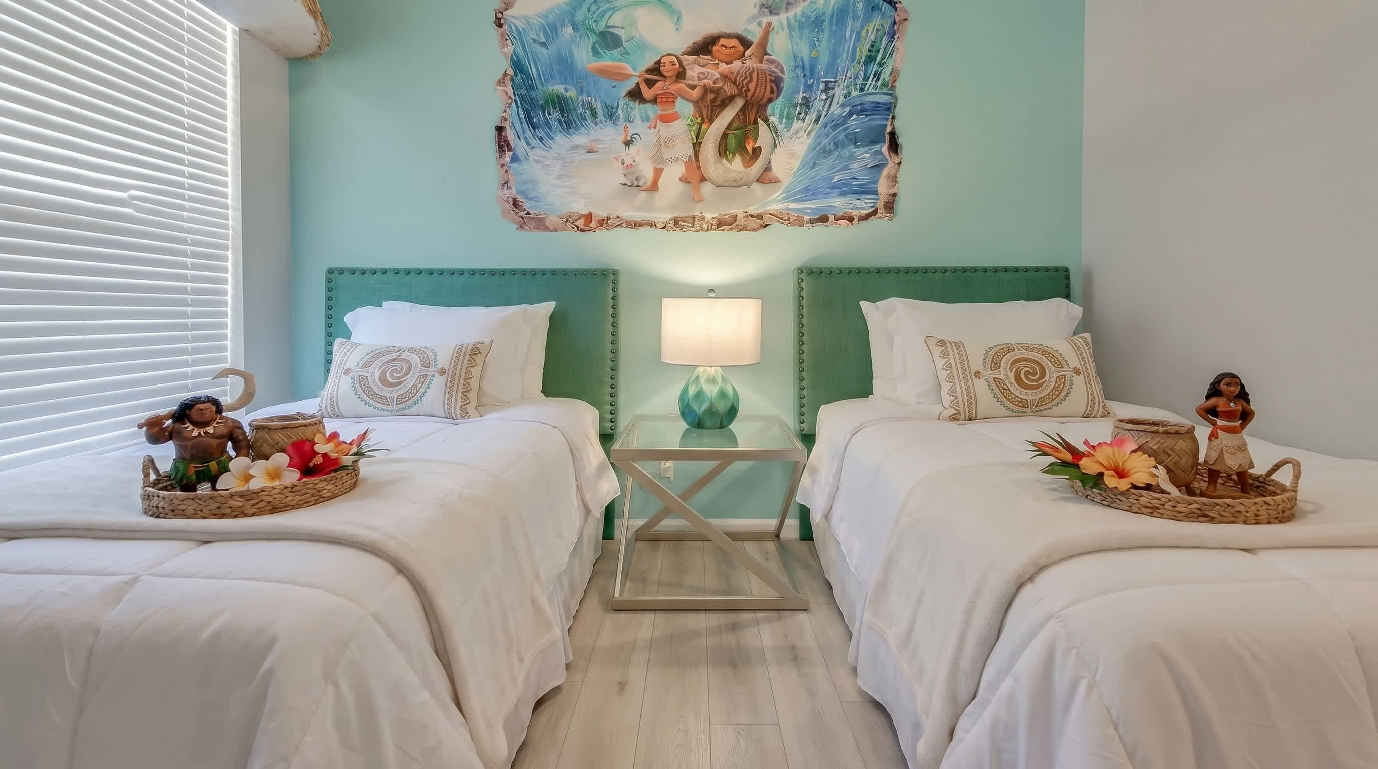 - Bedroom 3: Moana theme with 2x Twin beds, en-suite shower (Ground Floor)
