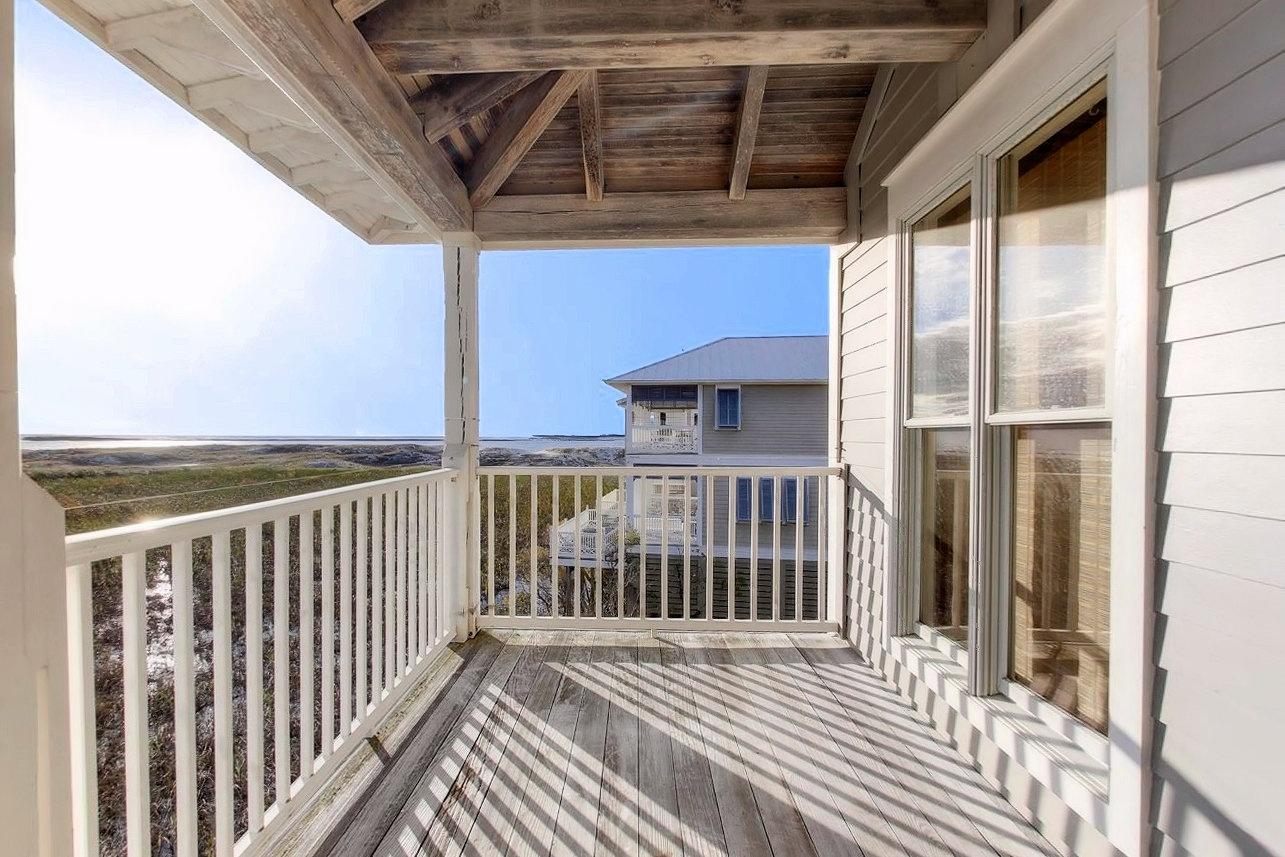 and two rocking chairs, along with a panoramic view of The East Pass, The Gulf