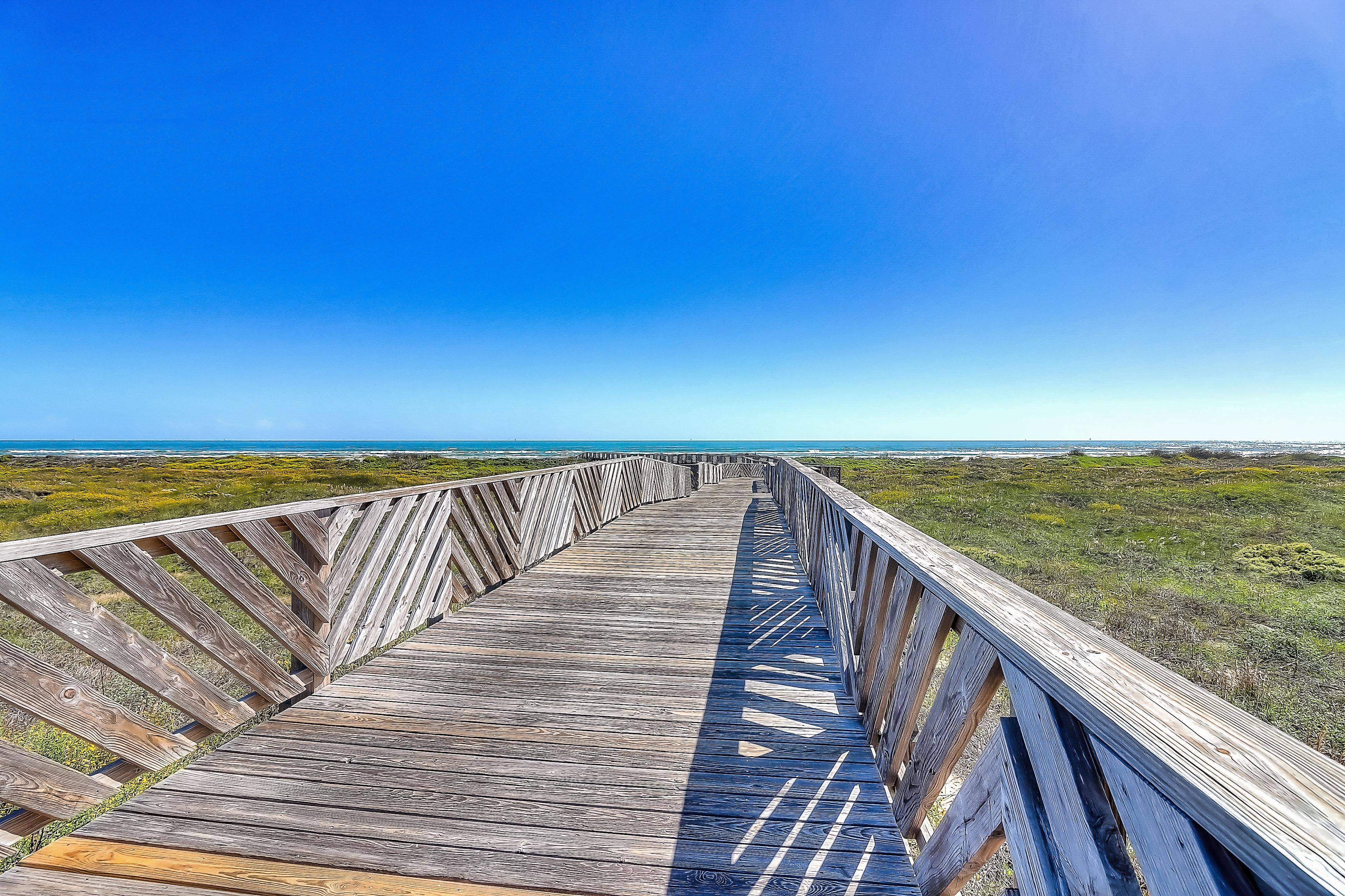 Experience the ultimate Gulf Coast getaway in this luxury three-story 4BR/4.5BA home. Port Aransas poolside luxury home is part of the Palmilla Resort, and the amenities are fantastic: Two on-site pools which are heated during the winter, a boardwalk and a green common area with park benches for kids to play. The Oasis pool features the only swim-up bar on the island! The newly designed nine–hole golf course incorporates the best of true links–style play, winding through the community, and is suitable for players of all levels. The beach is within a short walk, just 600 feet away.