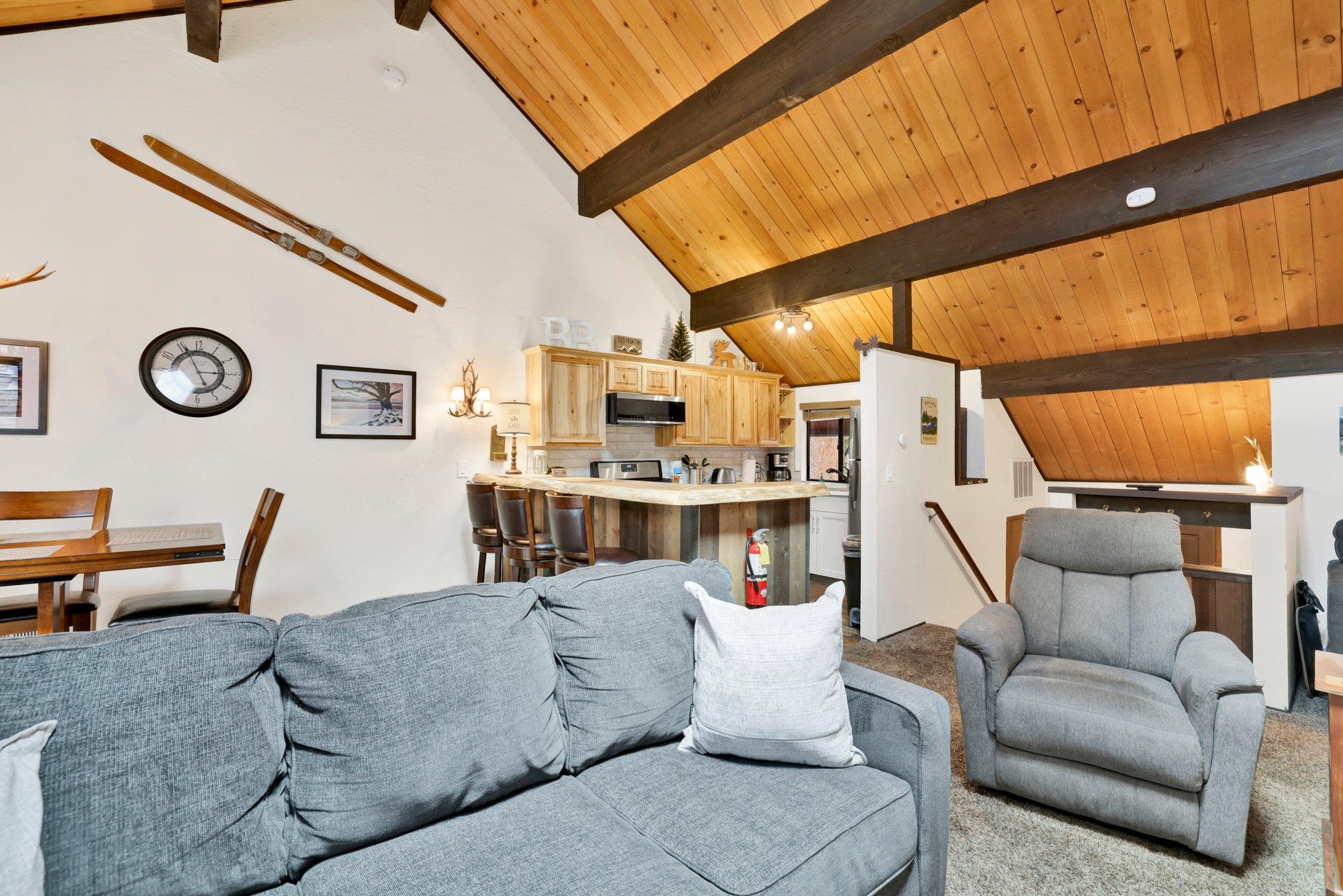 Nestled just steps from the base of Snow Summit, this charming and spacious 2-bedroom, 2-bath condo offers the perfect mountain getaway for families and friends. Boasting an open-concept living area featuring a toasty fireplace and living area, fully equipped kitchen, and dining space – ideal for relaxing after a day on the slopes or trails. This chalet is perfect for any season with direct access to ski and bike park lifts and local hiking trails- come experience your home away from home at Big Bear today!