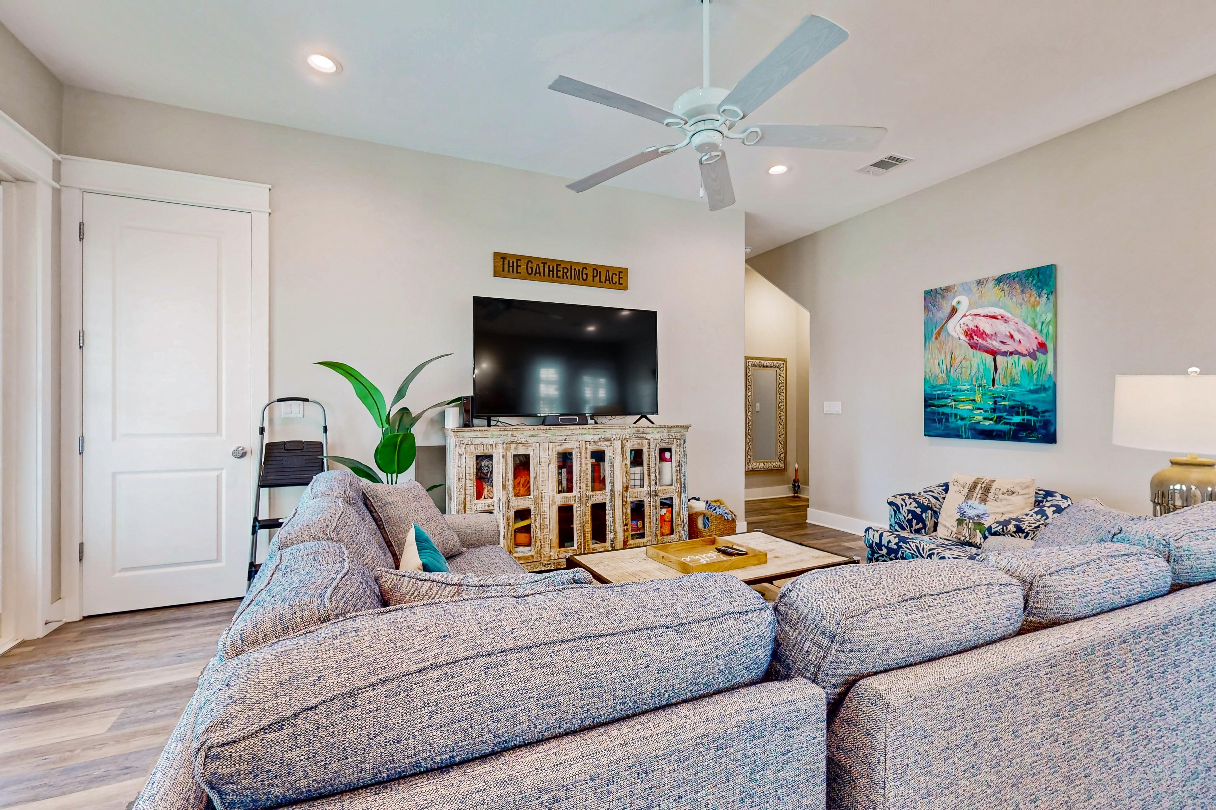 Beach access is just steps away, making it easy to spend your days soaking up the sun and playing in the waves. Enjoy a game of ping-pong for more family fun after a day out swimming. In the evenings, fire up the gas grill for a barbecue or relax with a drink on one of the three porches or the balcony overlooking the water.