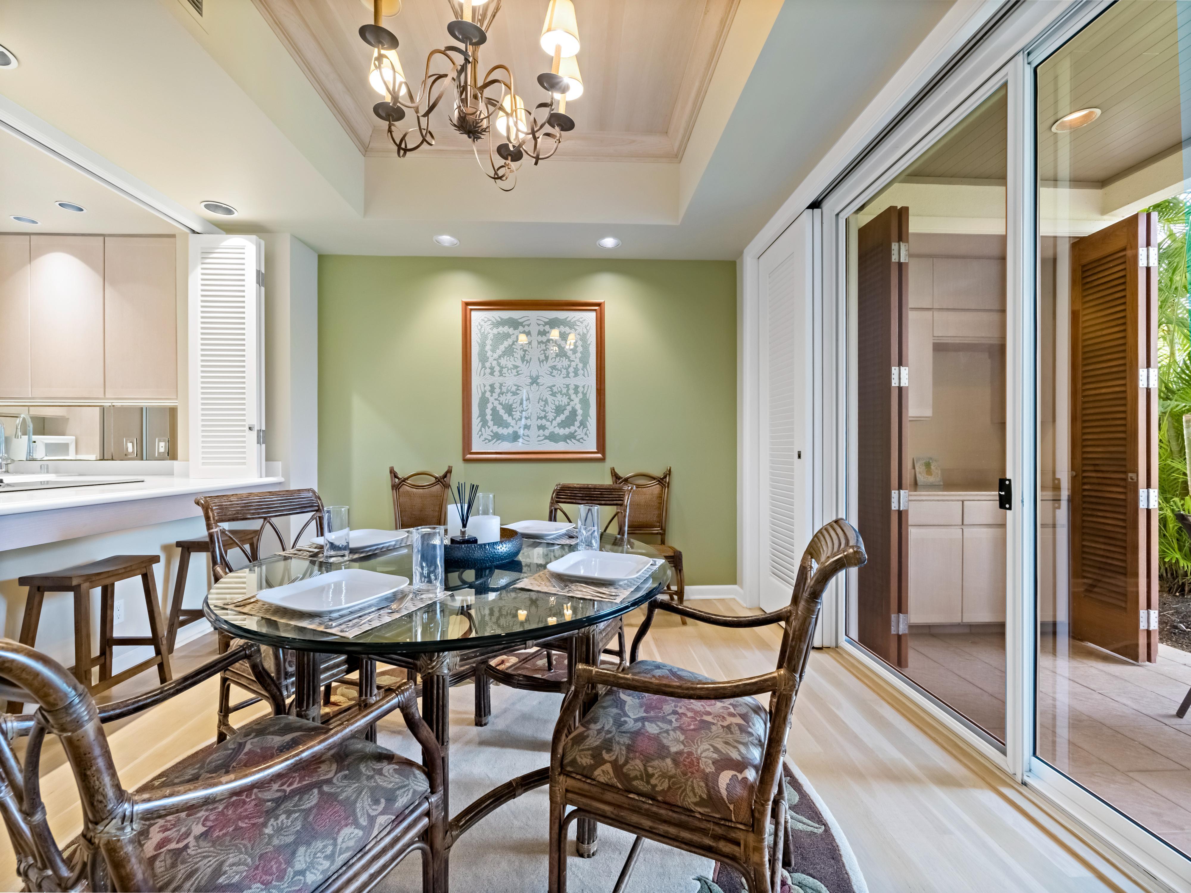 With 2,100 square feet of living space spread out over two floors, this townhouse assures that all guests in your travel party can both mingle throughout the open floorplan and then retreat to private quarters to recharge the batteries. Prepare breakfasts in your full kitchen and choose to eat your meal at the dining room table, kitchen island, outdoor lanai, or gathered around the living room coffee table as you hash out the plans and activities for the day.