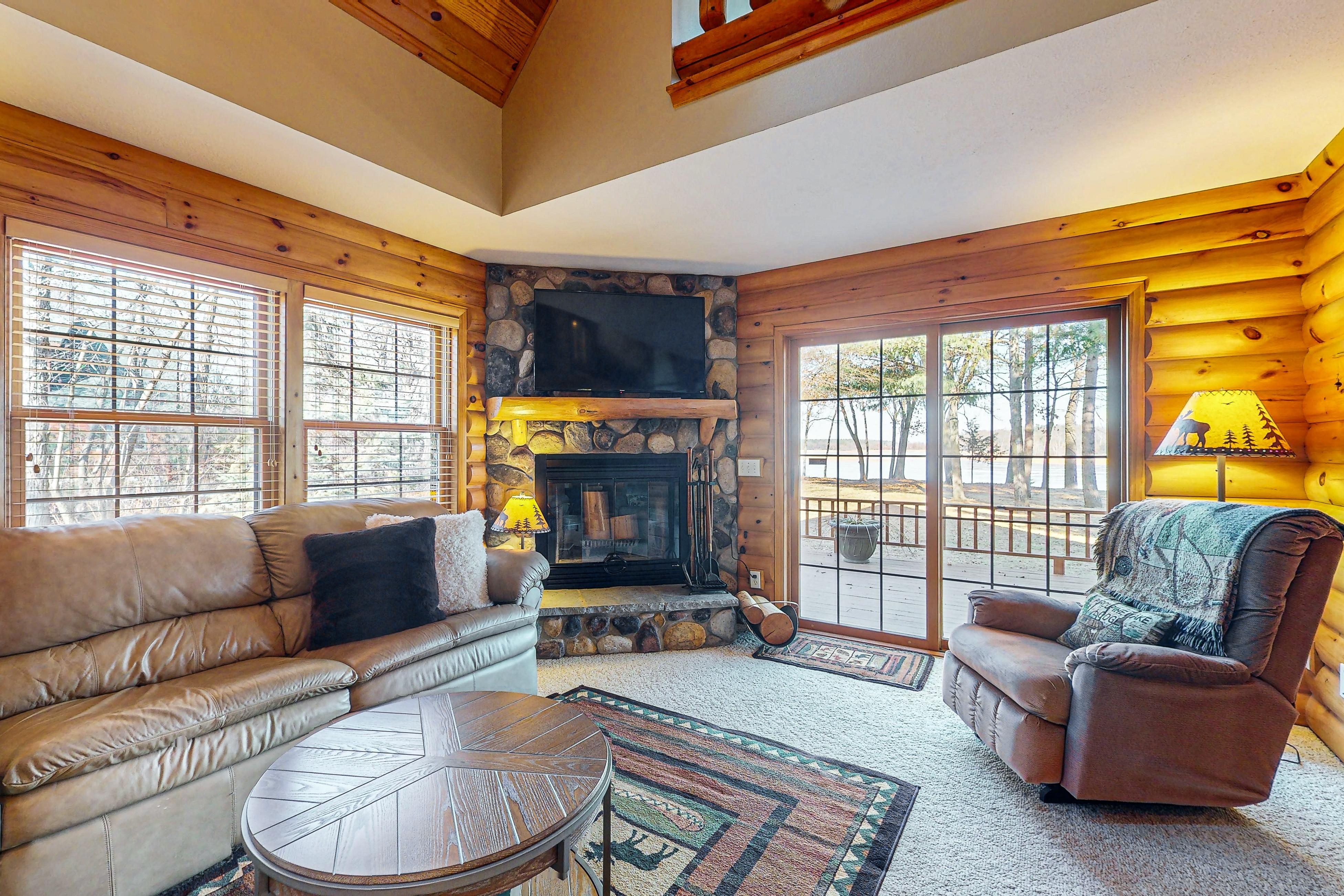 Escape to this charming log cabin nestled on 3 acres, directly on Castle Rock Lake and the Wisconsin River! This vacation home is a water lover’s paradise, offering a brand-new private pier where guests can fish, swim, lounge and tie up their boat for personal use during their stay. The public boat launch is conveniently located just a mile away. Included with this vacation home is a 10 ft rowboat and a 12 ft canoe for guests to enjoy. Relax with morning coffee on the large deck or take in the lake breeze from inside the 4-season porch with wrap-around windows.
