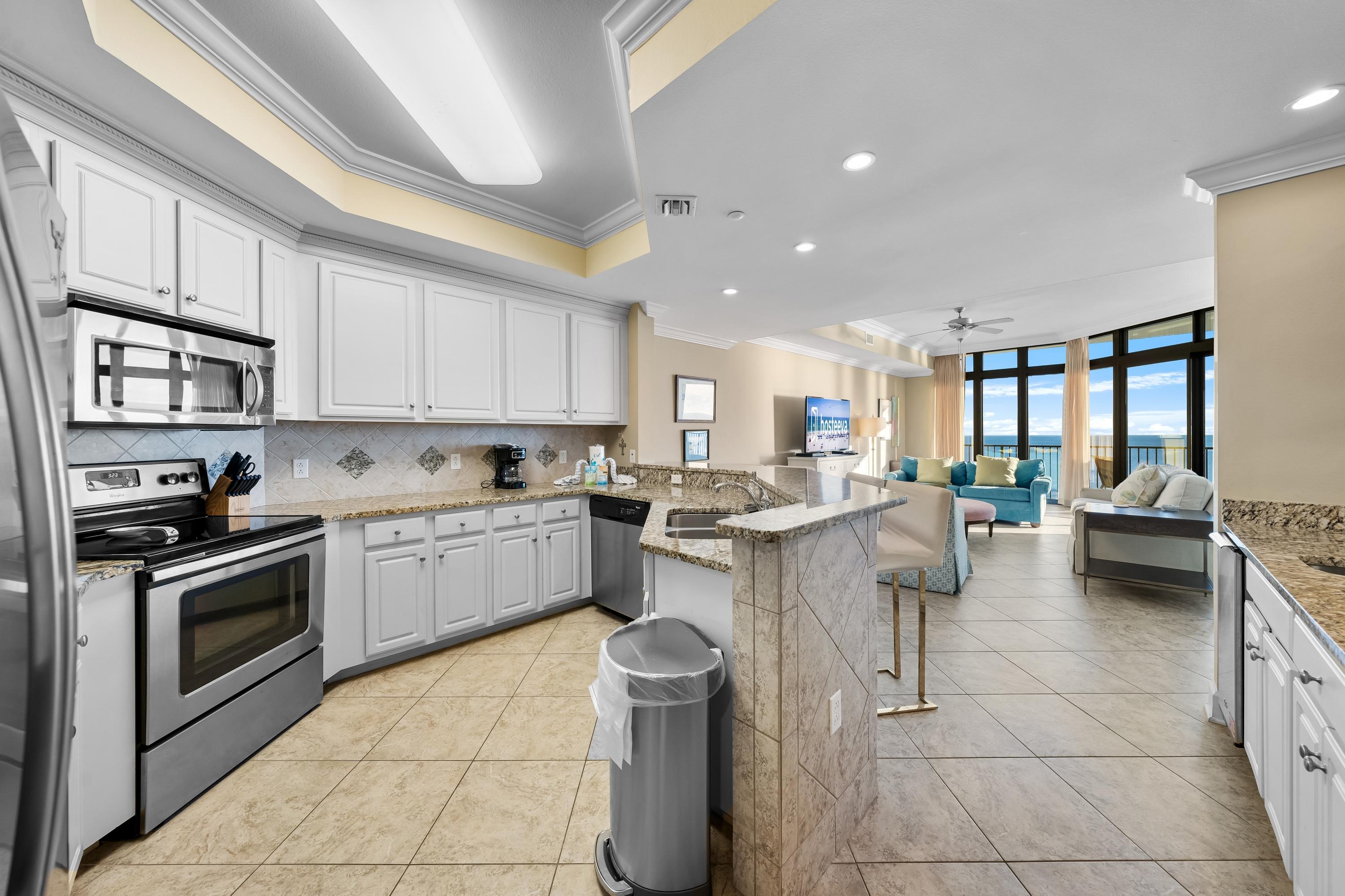 Step out onto your private balcony and enjoy stunning views of the Gulf of Mexico, or relax indoors in the bright, open living space with a fully equipped kitchen—perfect for cooking meals and making memories together.