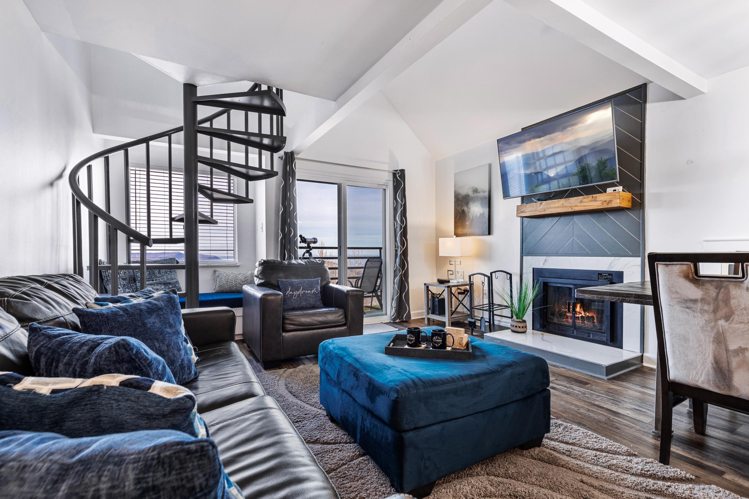 This recently remodeled condo features a fully stocked kitchen that's perfect for a home-cooked meal. The beautifully decorated space features a modern design with a gorgeous, stacked stone fireplace and a spiral staircase leading up to the second-level loft with skylight. Curl up and read a book in the cozy window seat, or enjoy your favorite show on one of the 4 flat-screen smart TVs throughout the unit. Spend the day hiking through Smoky Mountain National Park, or skiing at the amazing ski resort that sits right on the edge of the property. Head to downtown Gatlinburg or Pigeon Forge where you'll find endless restaurants, year-round ice skating, the Tennessee Aquarium, Ripley's Believe It or Not, Dixie Stampede, Dollywood, and so much more. Don't forget about the Space Needle observation tower and the Sky Lift.