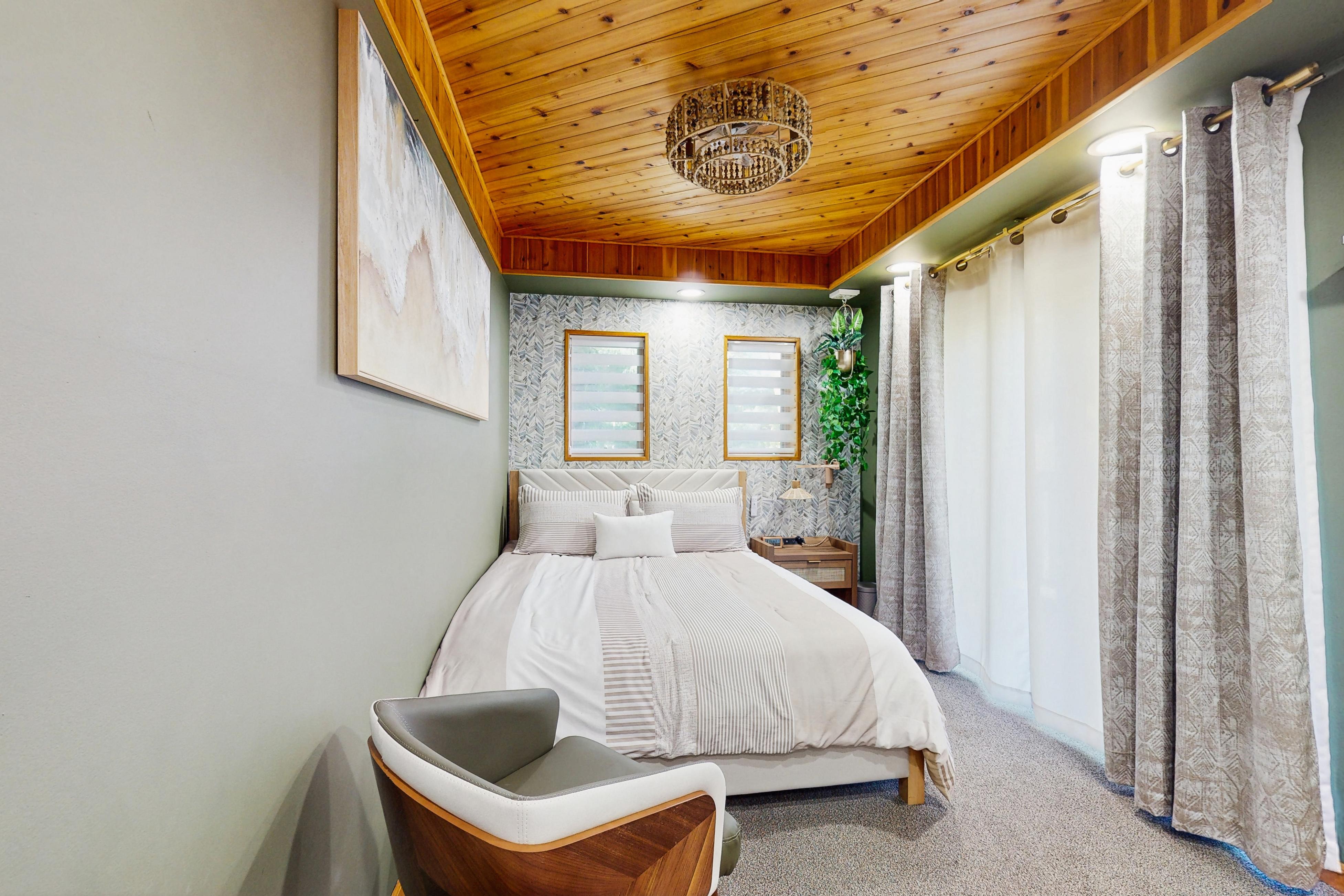Two of the five bedrooms can be found on the main floor. Each bedroom on this floor includes private access to the wrap-around deck and a shared bathroom just off the hallway. Upstairs, guests will find the other three bedrooms and a shared half bathroom.