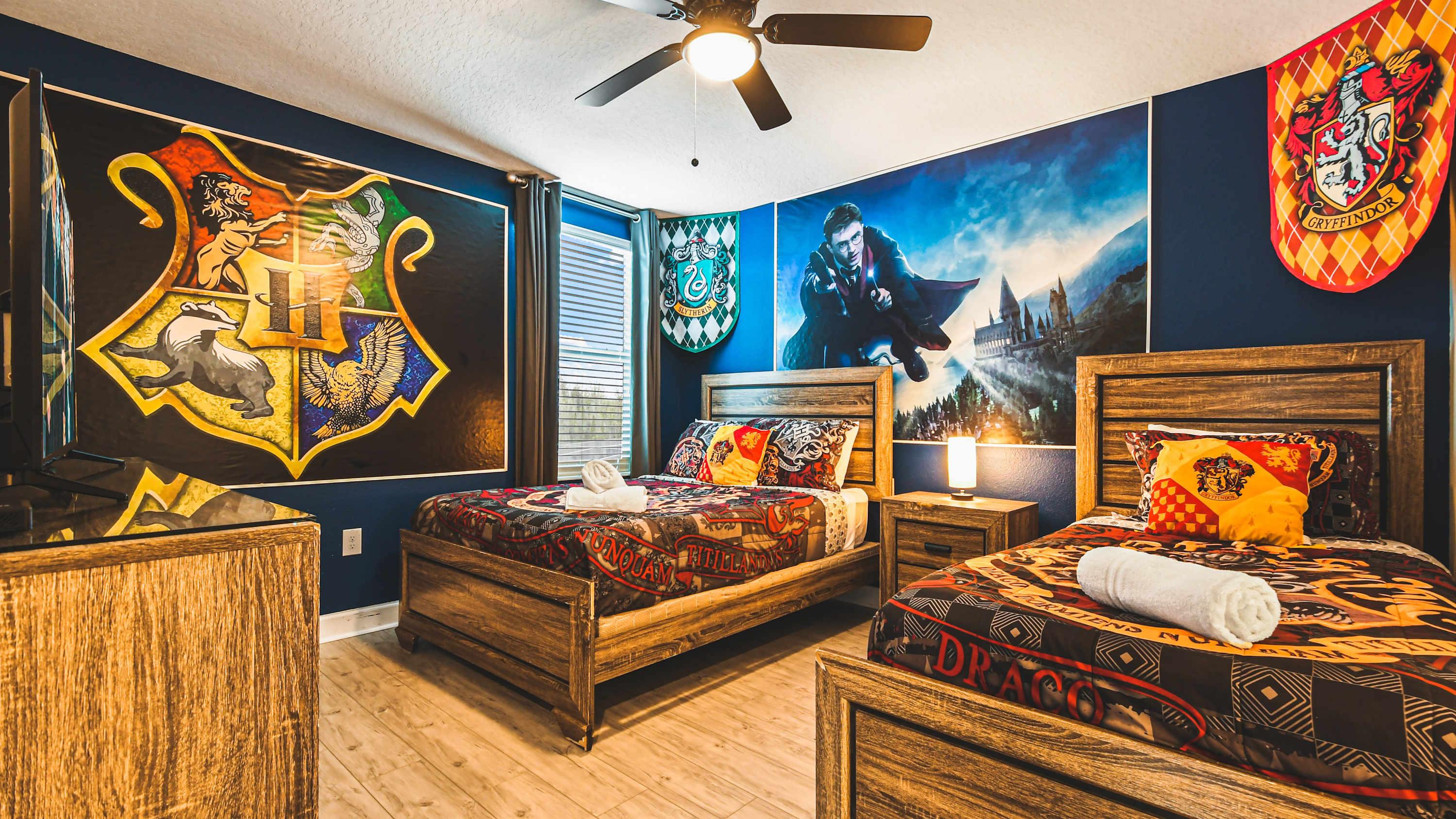 - Bedroom 8: Harry Potter theme with 1 twin 1 full bed, with attached bathroom (Upstairs)