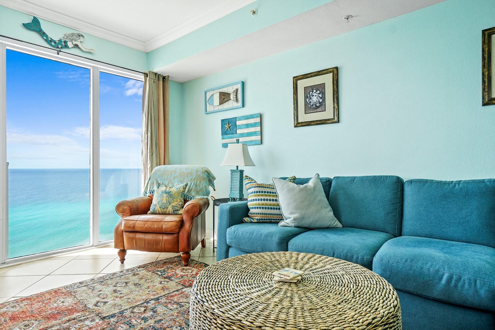 Spacious living area – Gulf view, 65" Smart TV, balcony access