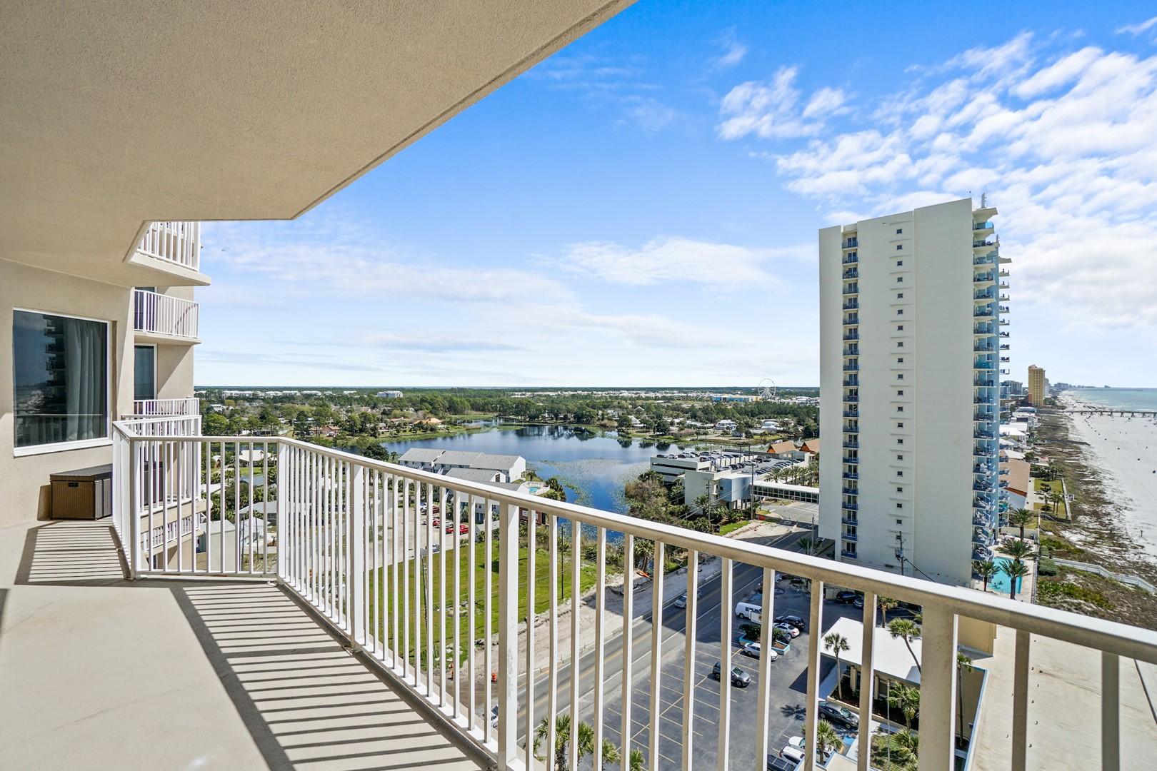 Large private balcony with Gulf and beach views