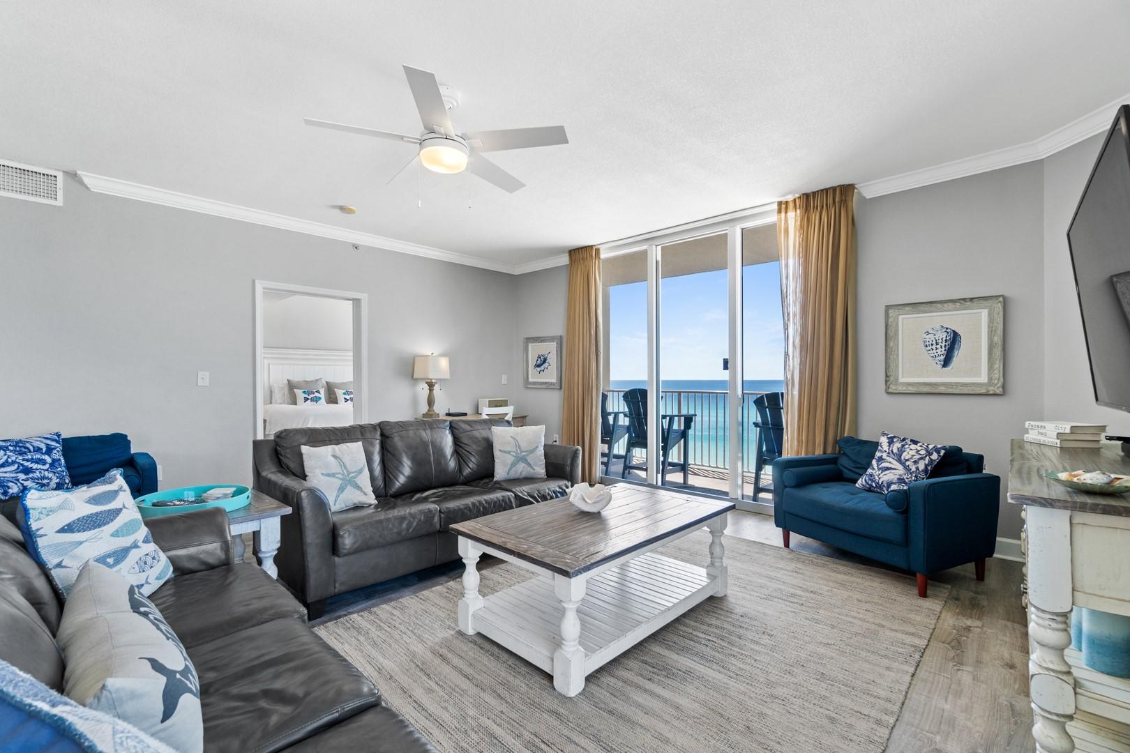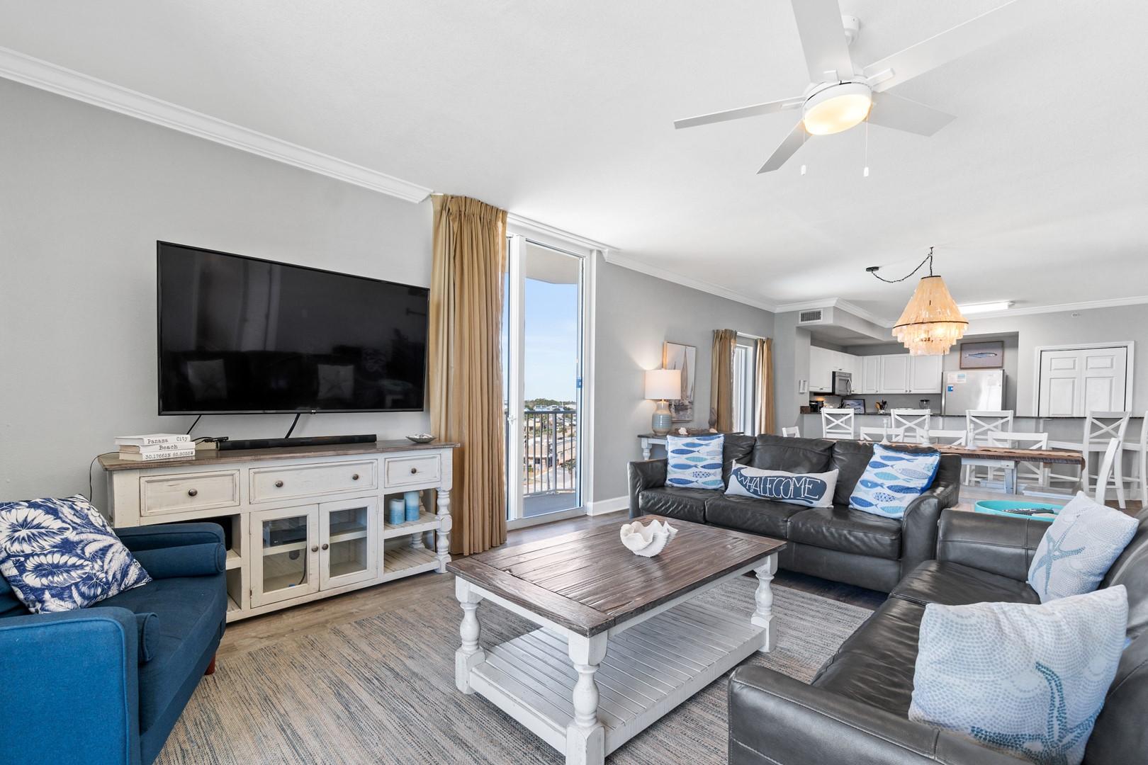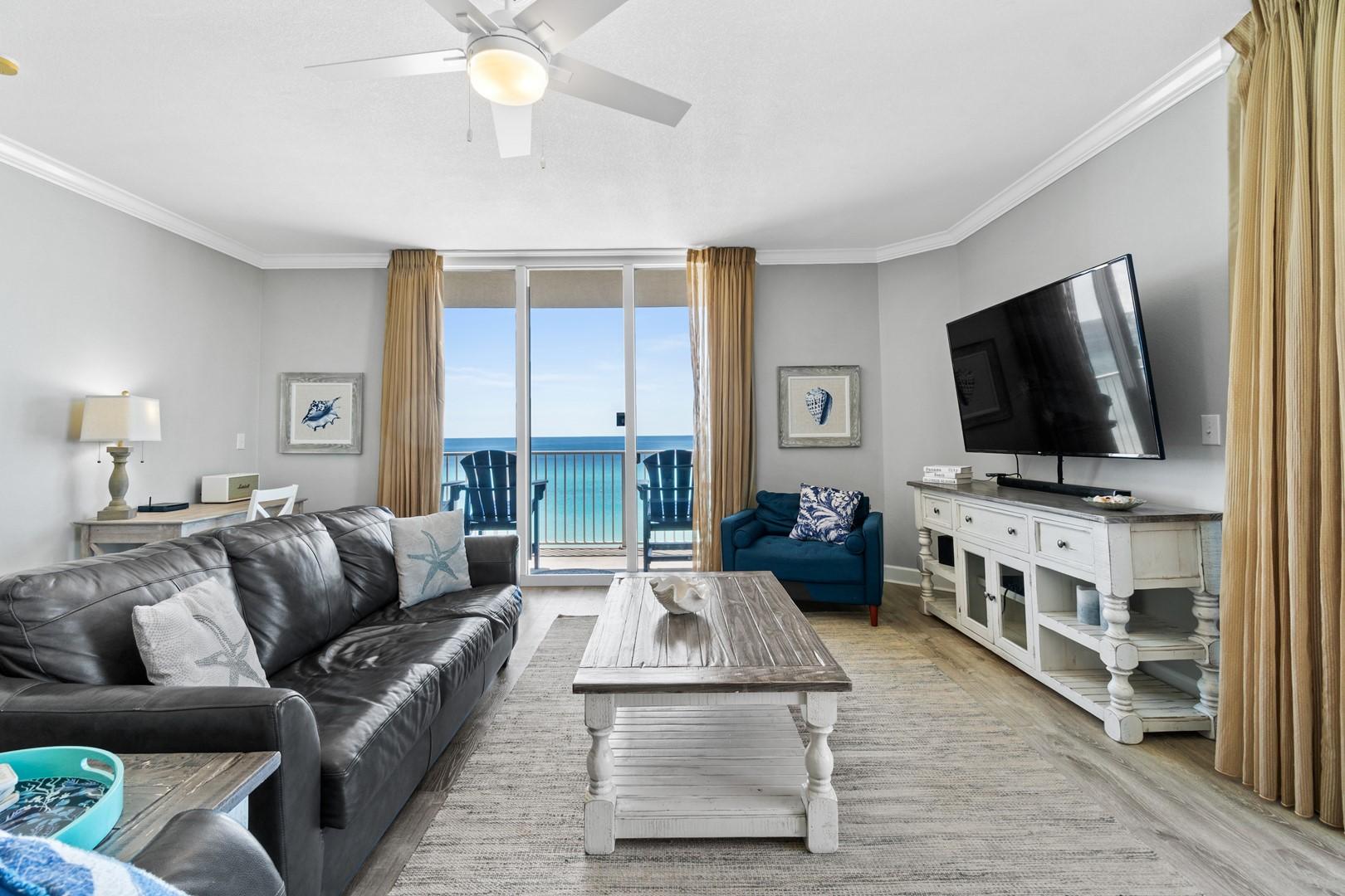 * Living Area - Floor to Ceiling Windows with Gulf View, Large TV