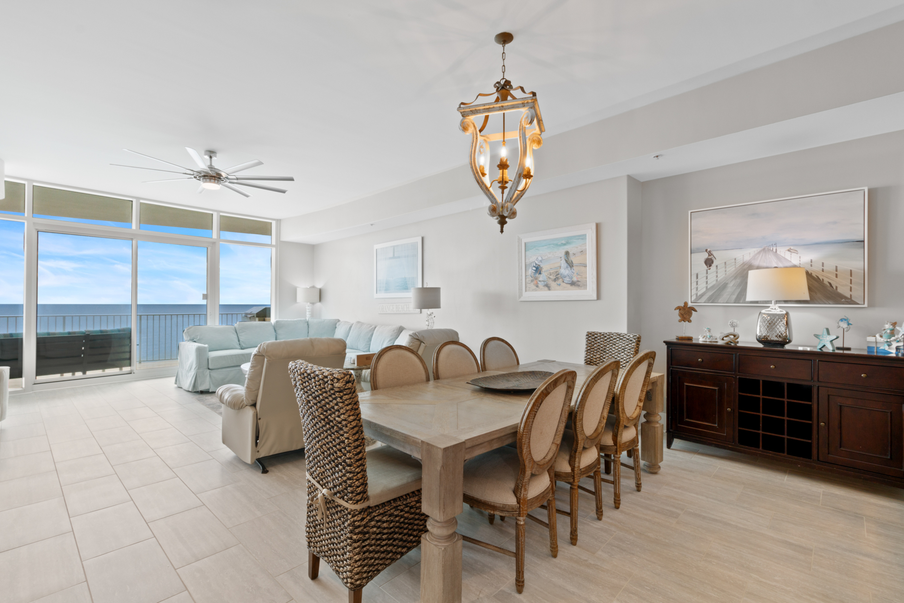For culinary enthusiasts, the fully-equipped kitchen will delight you with its granite countertops. Prepare delicious meals with ease and savor them together at the elegant dining area overlooking the Gulf.