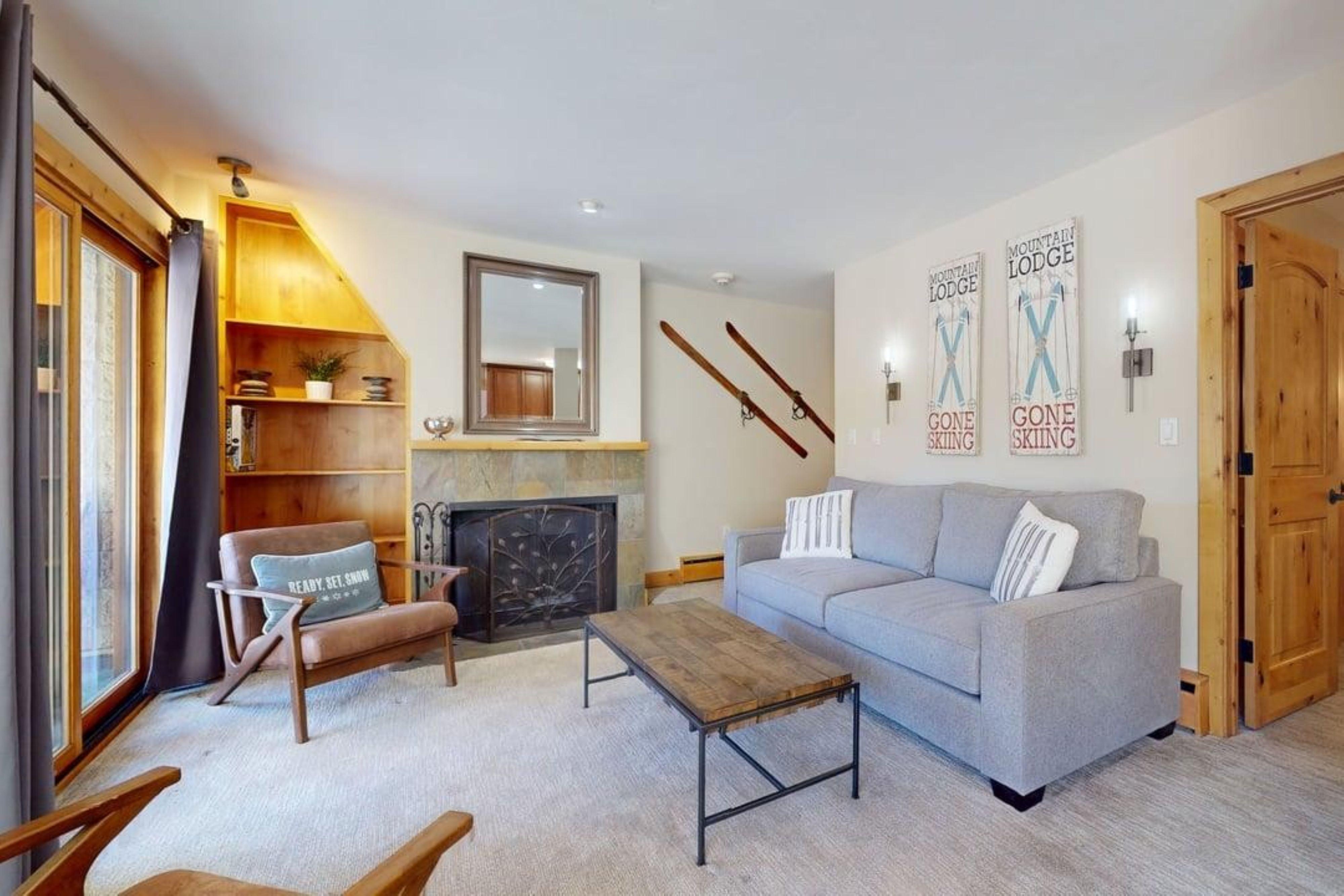 Unwind in the quaint, rustic charm of Vail 21 #303, a cozy 841-square-foot mountain retreat in Lionshead Village. This two-bedroom, two-bath condo offers breathtaking views of the Gore Range and is just 75 yards from the slopes, après ski activities, shopping, and dining. Enjoy the inviting living area with a stone wood-burning fireplace, an updated kitchen with adjacent dining for five, and a private balcony. After a day on the slopes, relax in the rooftop hot tub while taking in stunning mountain views. The master bedroom features a king bed and private bath, the guest bedroom has two twin beds and a full bath, and the living room includes a sofa sleeper, accommodating up to six guests.