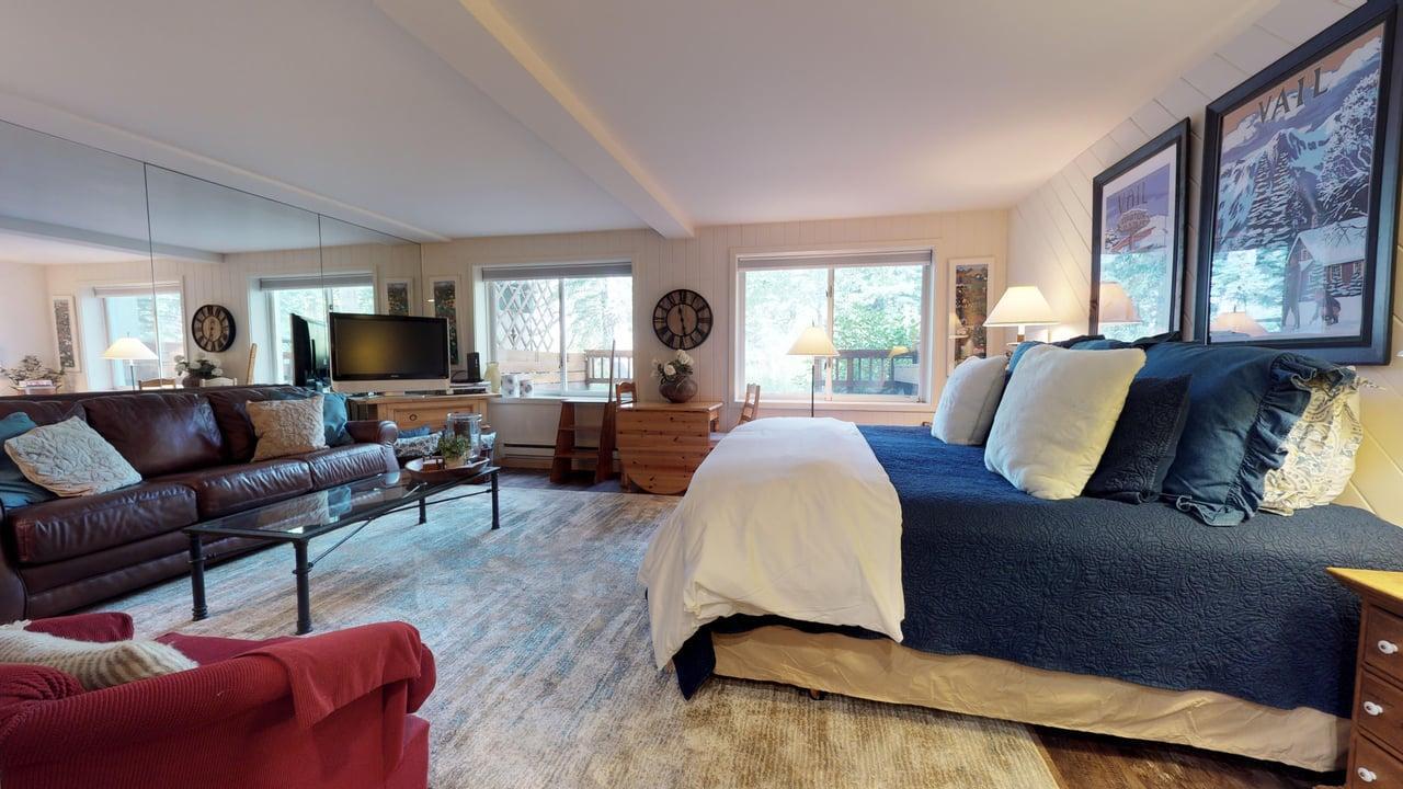 Experience the best of Vail from this cozy and well-appointed studio at Vail Trails Chalet 3B—just a 5-minute walk to Golden Peak, Gondola One, and the vibrant dining and shopping scene on Bridge Street. Ideal for couples or small families, the studio offers a king bed, a queen sleeper sofa, a full bathroom with a tub/shower combo, and a fully equipped kitchen with modern appliances. Enjoy added comforts like a spacious closet, one free onsite parking space, and access to a shared washer and dryer. Nestled along the scenic Gore Creek, this charming alpine retreat is the perfect home base for your mountain getaway.