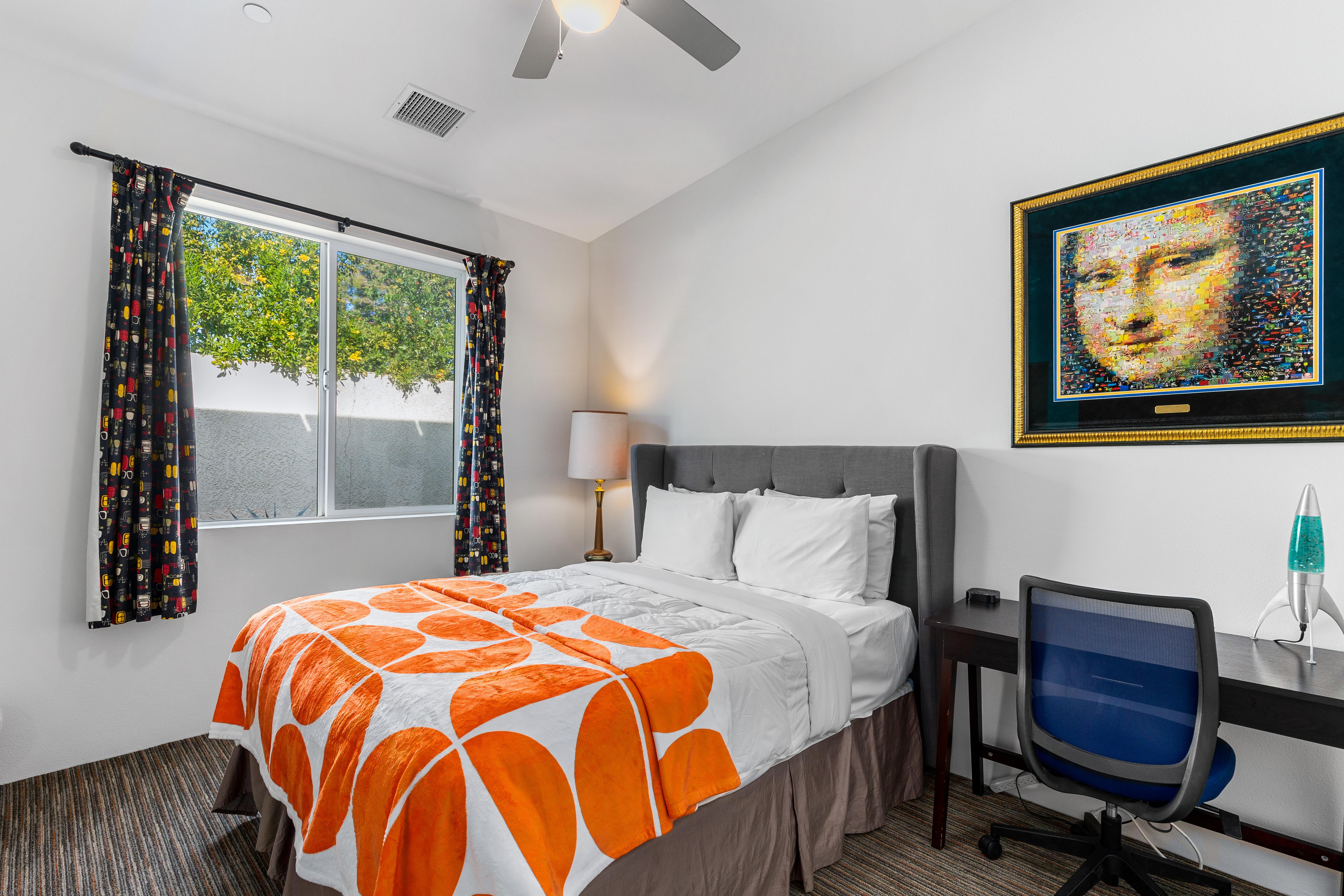 There aren’t many homes where you’ll find bedrooms that each have their own ensuite bathroom, but Veranda Aqua has just that. The spacious primary suite has a King bed, sitting area, desk, and direct access to the backyard and pool. Each bedroom has a colorful, boutique hotel-style design for ultimate comfort and relaxation.